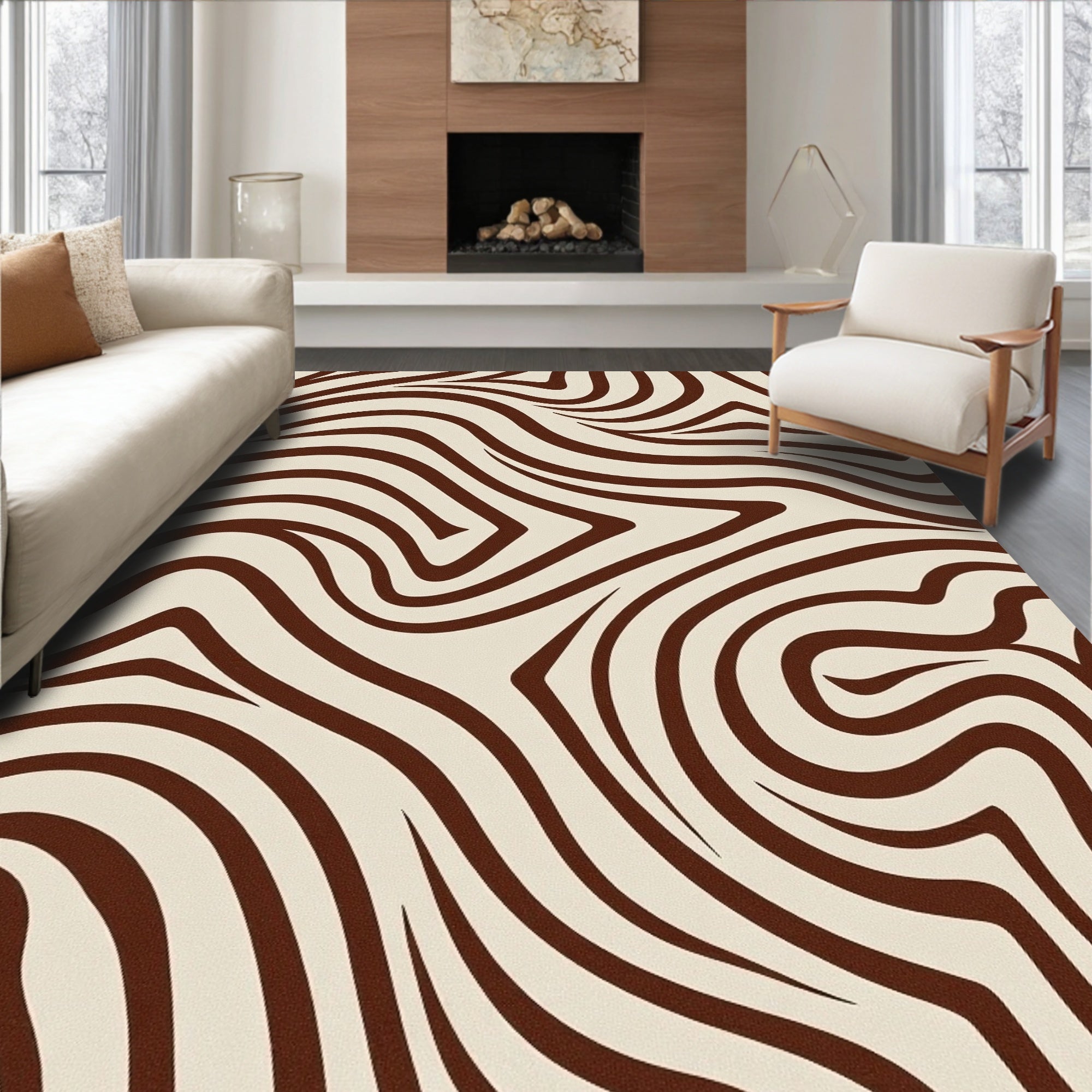 Luxurious Touch With Curved Wave Stripes And Abstract(Brown)