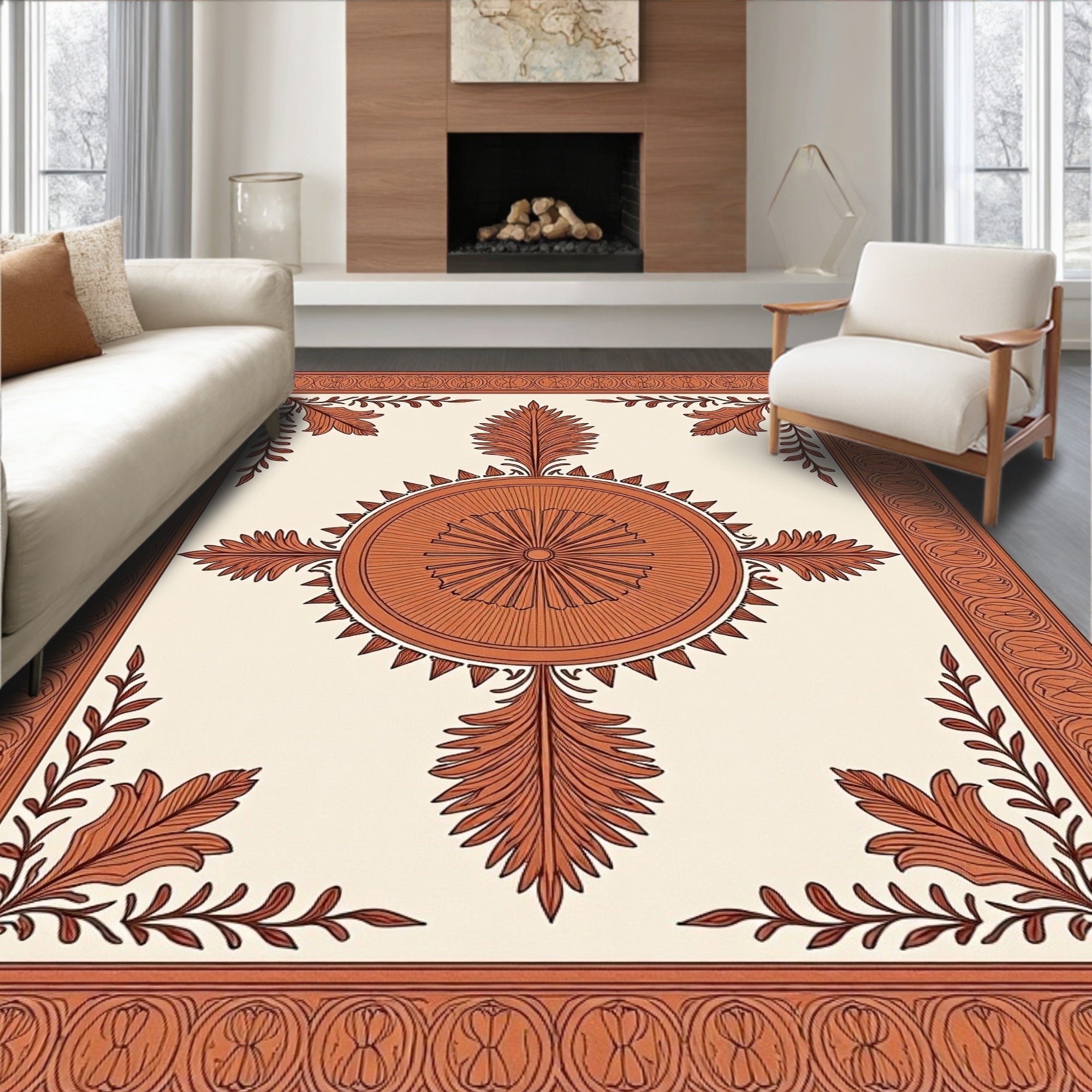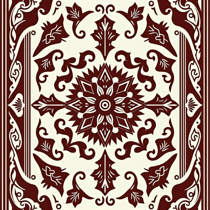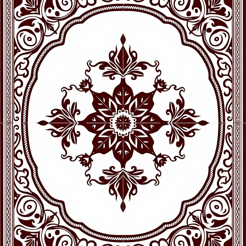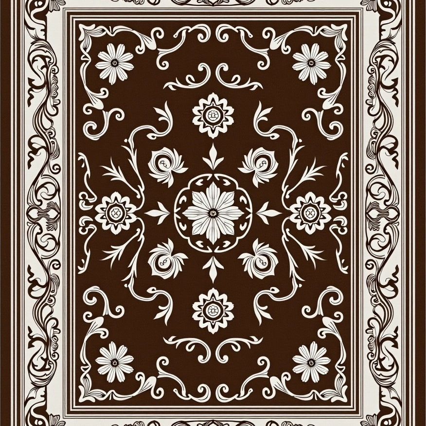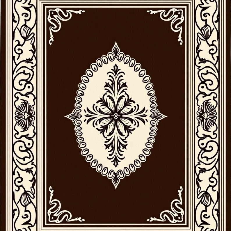 Ornate Medallion with Intricate Botanical Motifs(Brown)