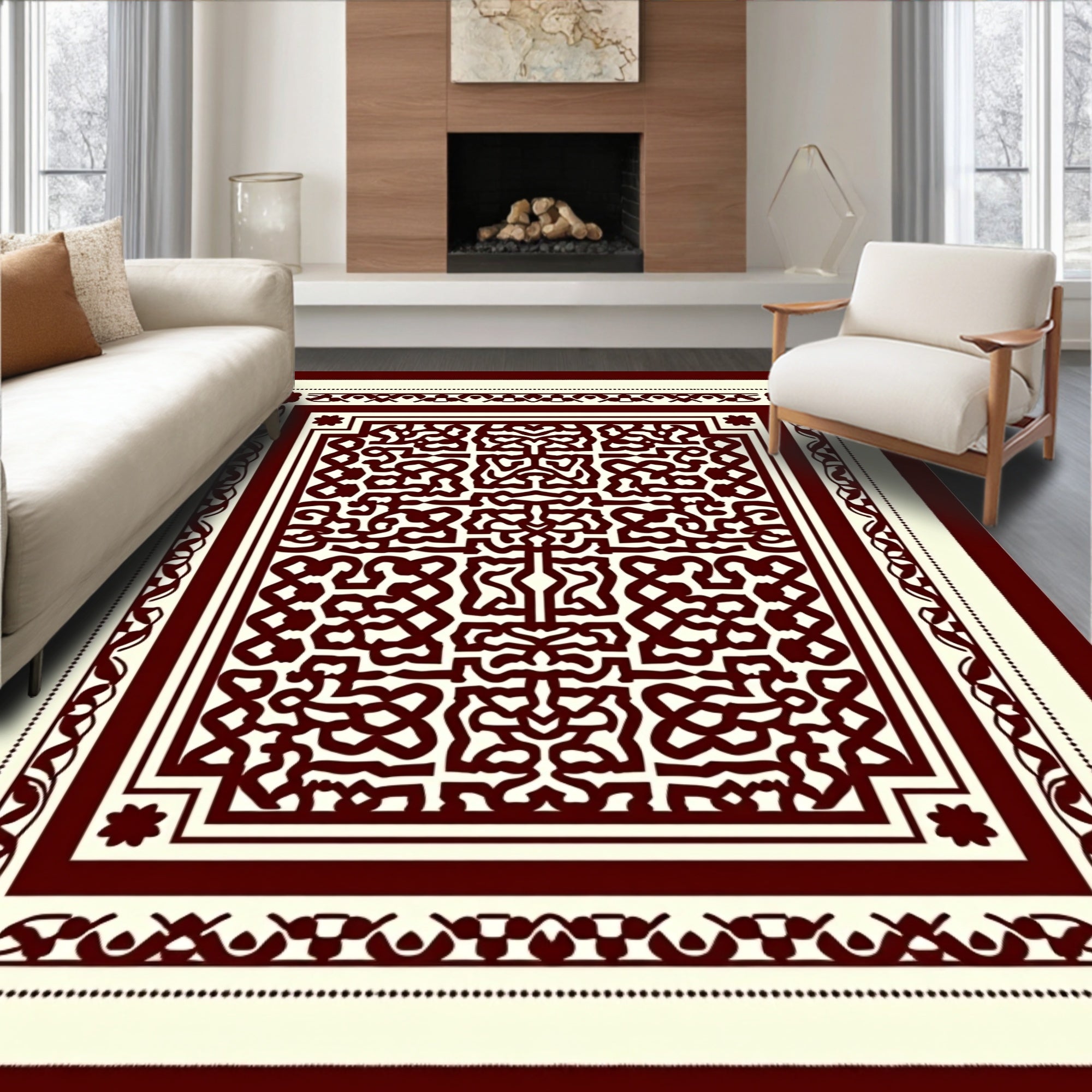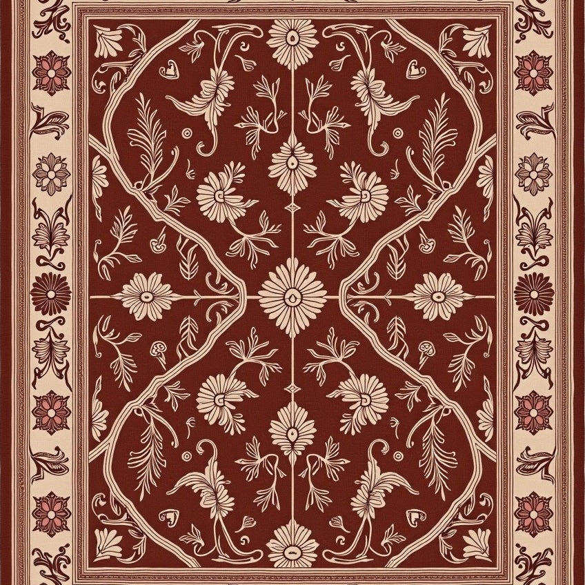 Artisan Lattice Blossom Interlocking Motif Classic Design(Brown)