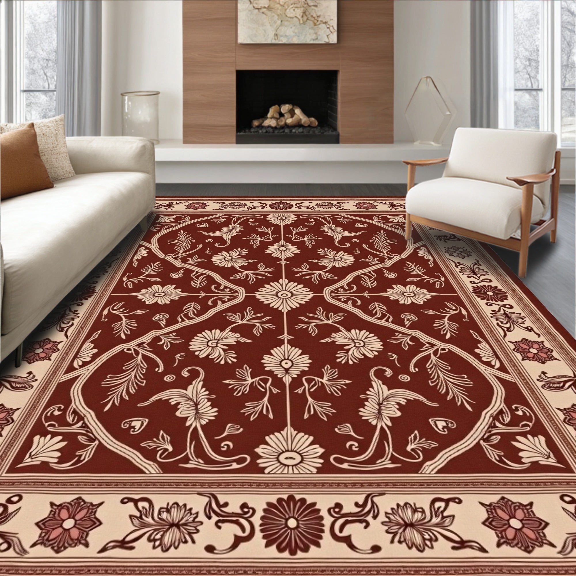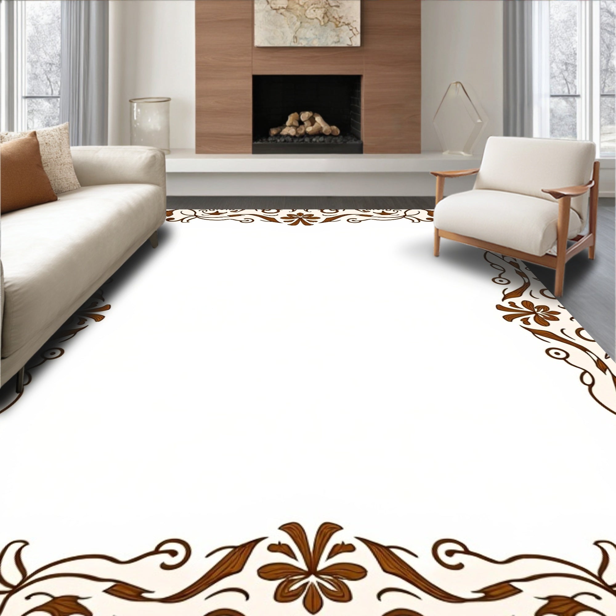 Classic Vinework Scroll with Ornamental Medallion Accents(Brown)