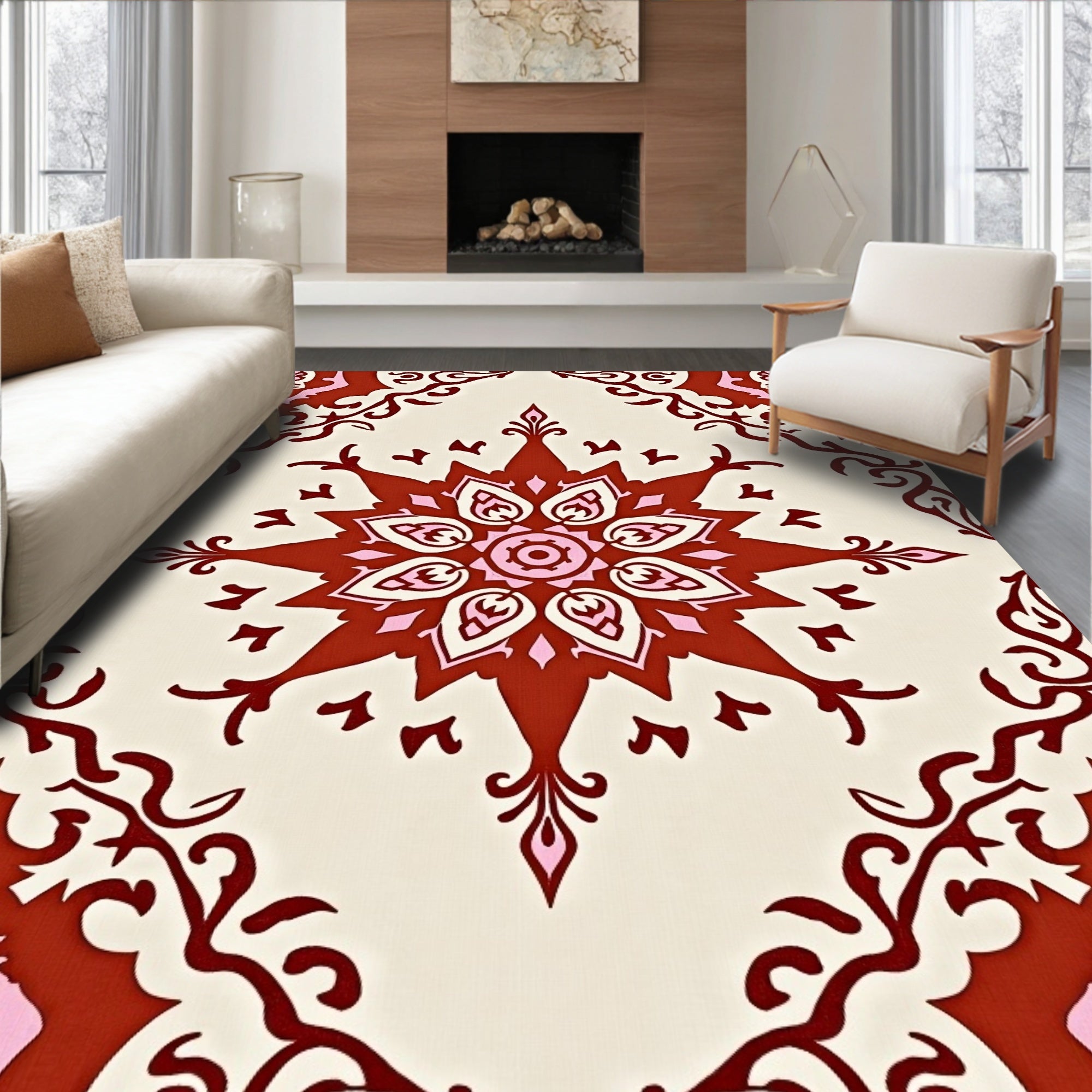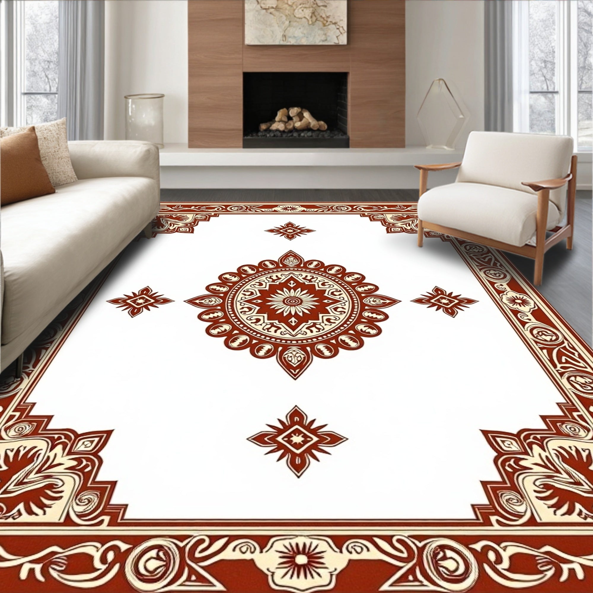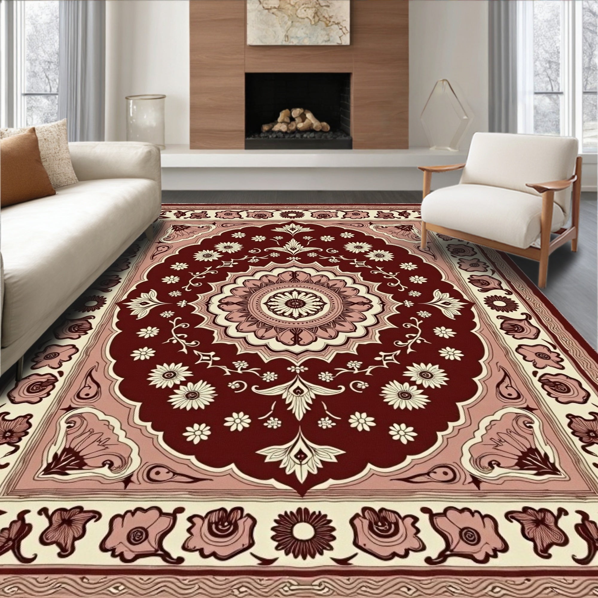 Rustic Oriental Inspired Featuring Faded Intricate Medallion and Floral Accents(Brown)