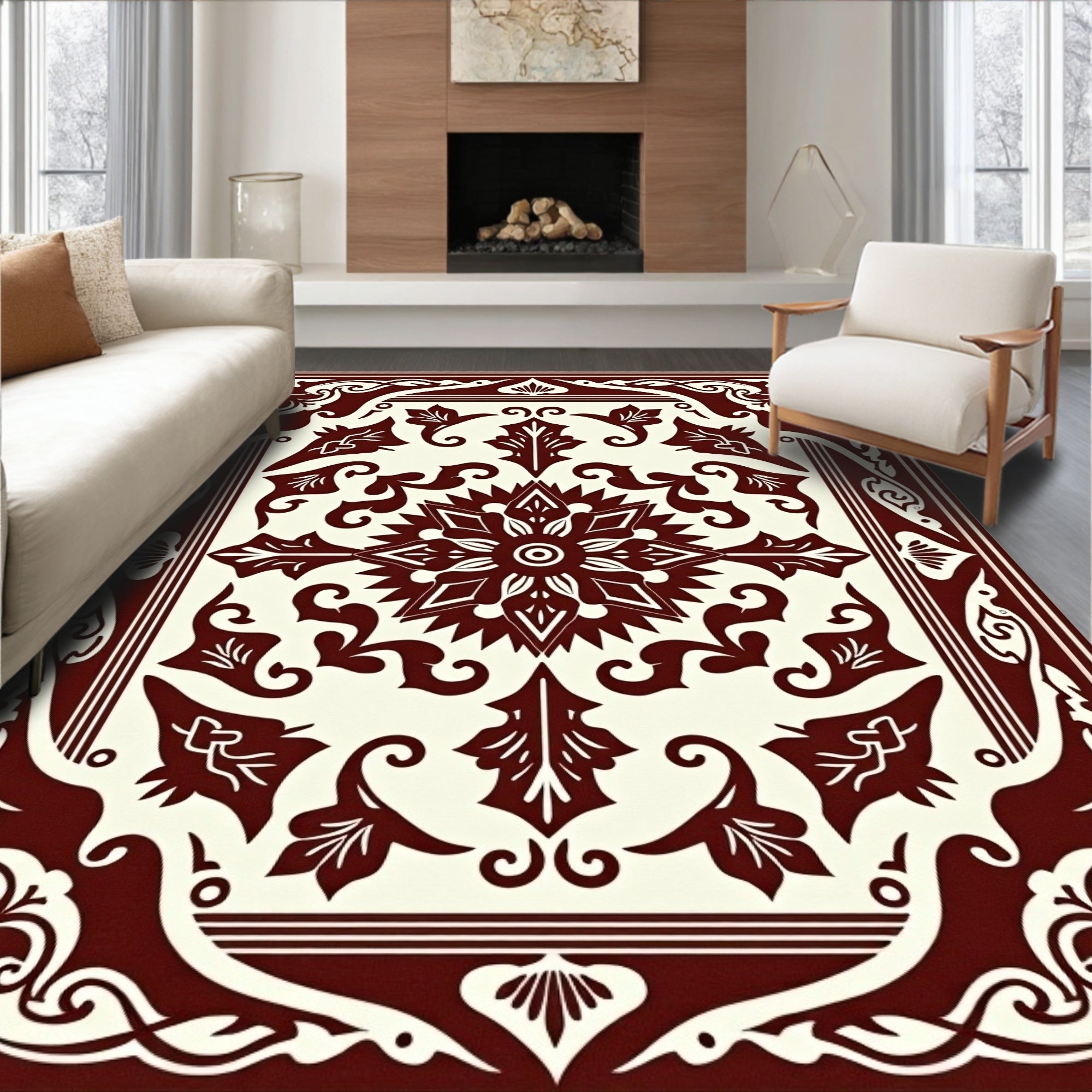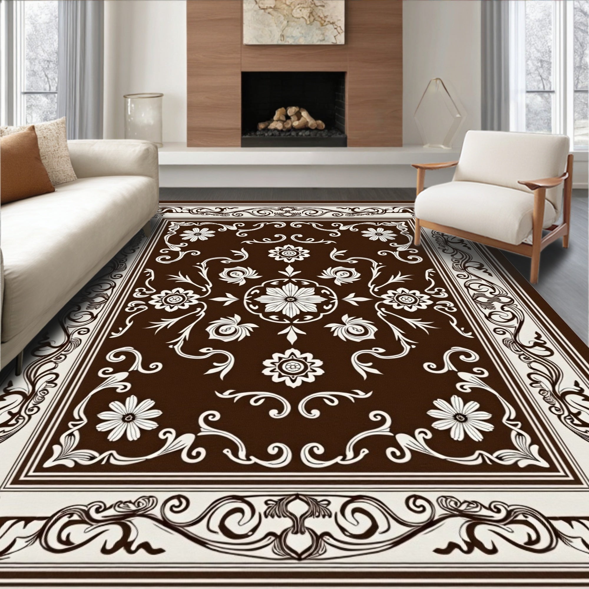 Traditional Scrollwork Design Featuring Symmetrical Vine(Brown)