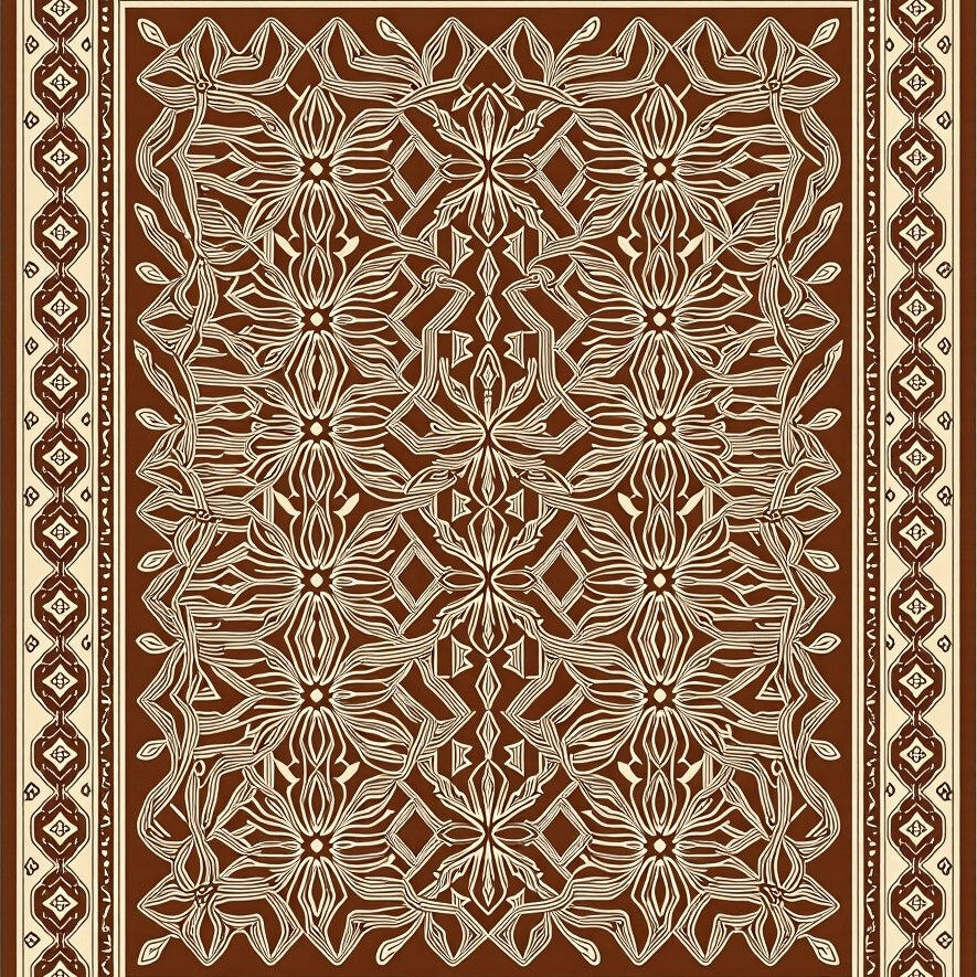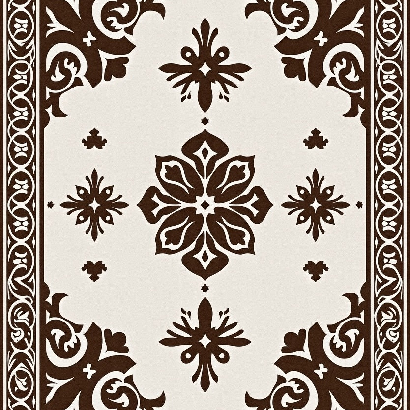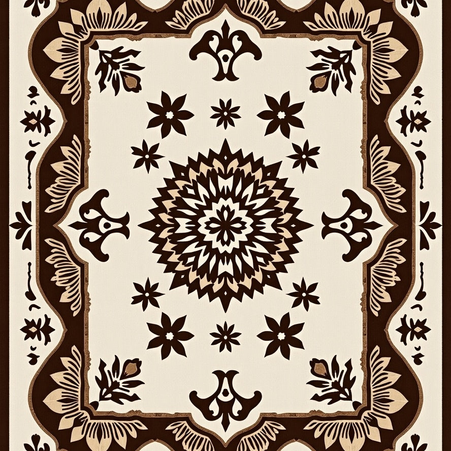 Elegant Interlocking Floral Medallion With Subtle Scroll Accents(Brown)
