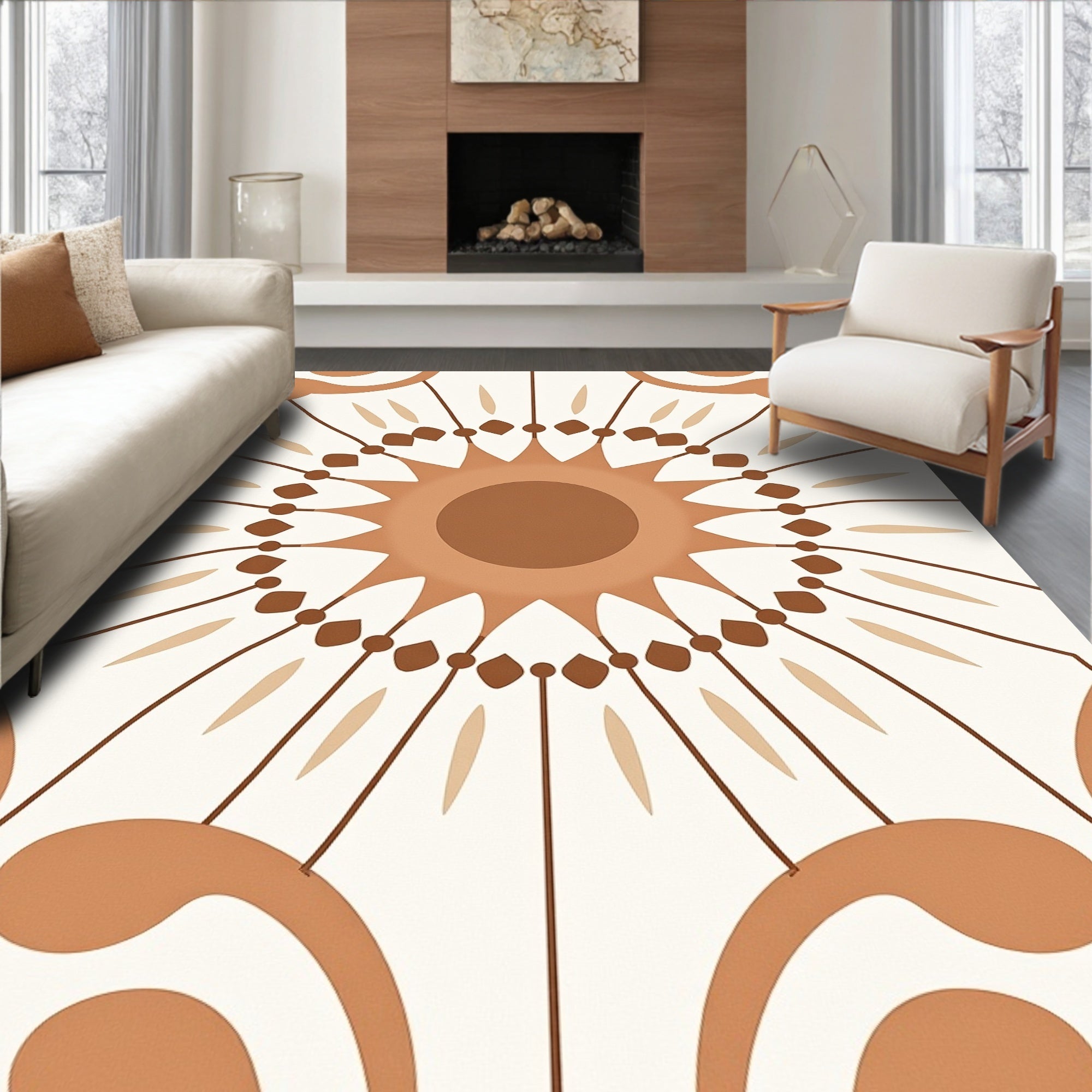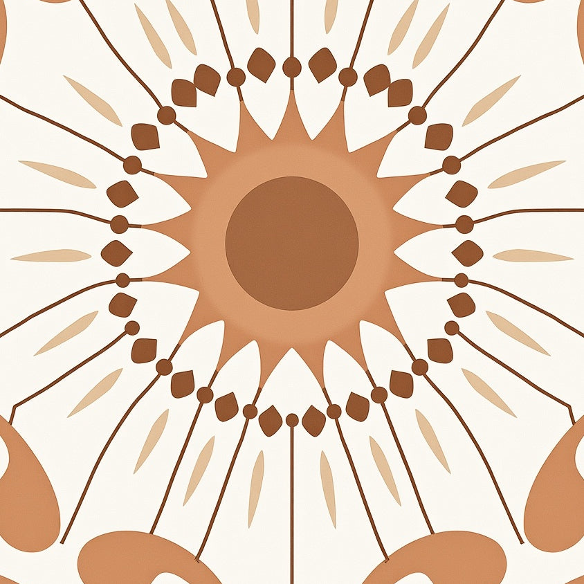 Abstract Sunburst Mosaic with Minimalist Petal Motifs(Brown)