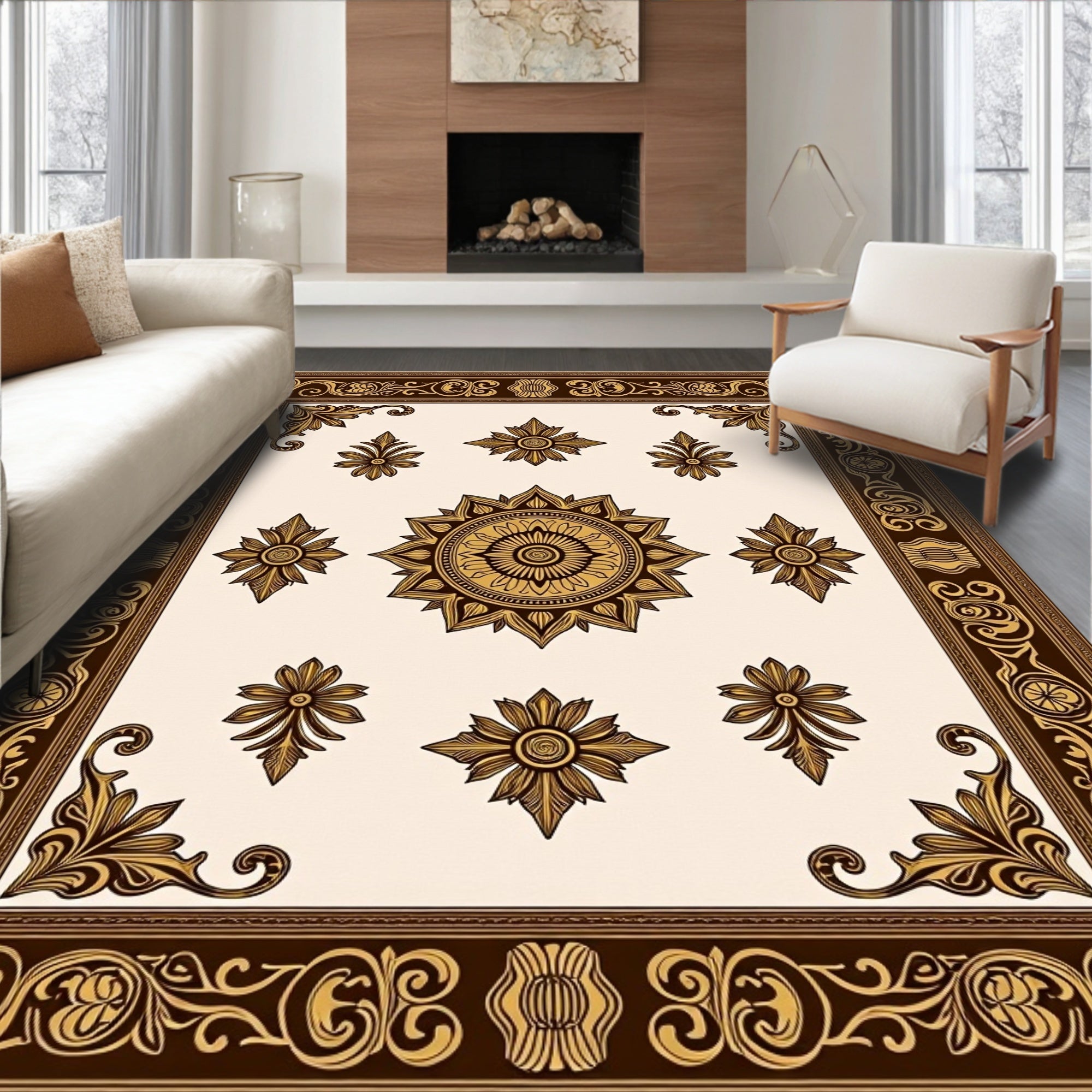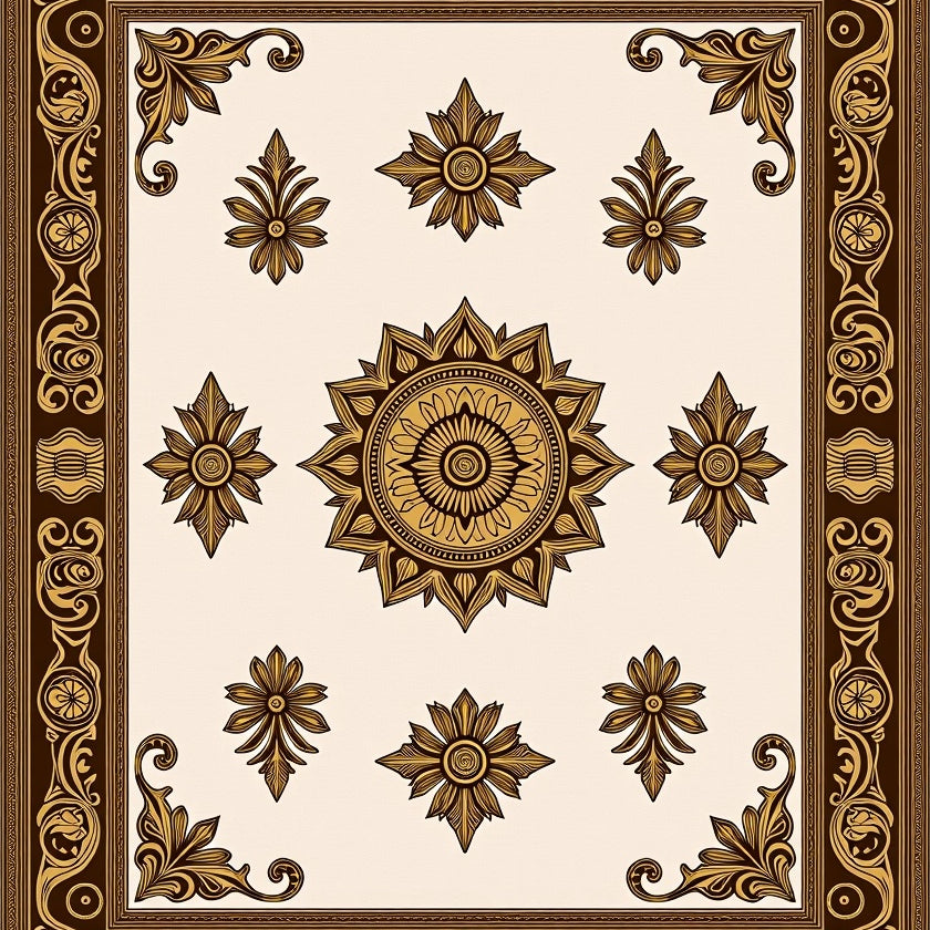Classic Medallion Array with Vintage Faded Border and Elegant Flourishes(Brown)