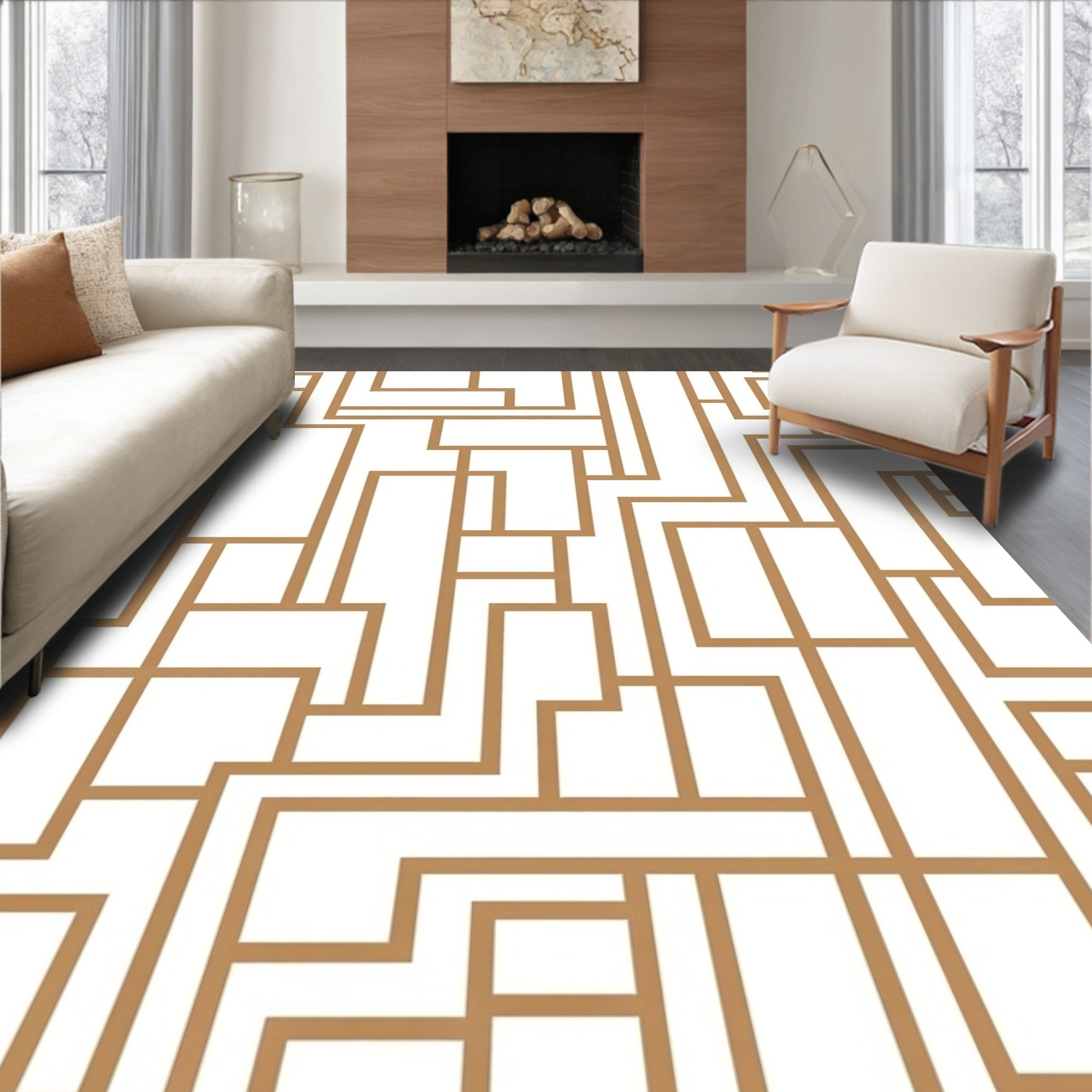 Asymmetrical Maze Labyrinth Contemporary Easy Clean(Brown)