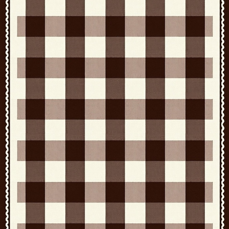 Vintage Farmhouse Buffalo Check with Subtle Herringbone Borders(Brown)