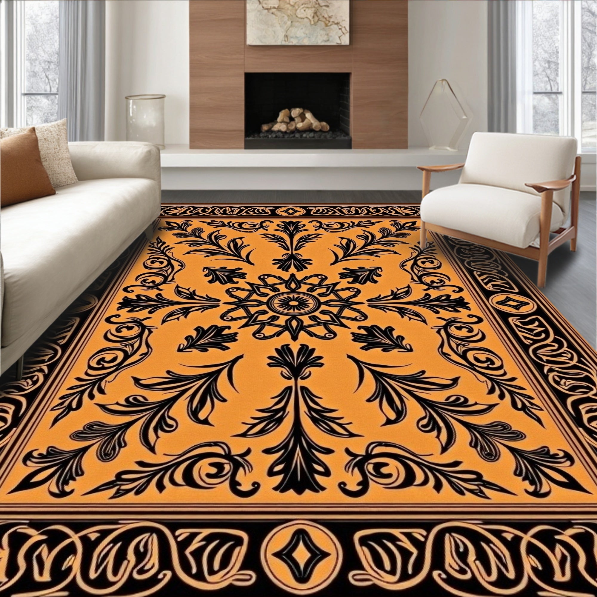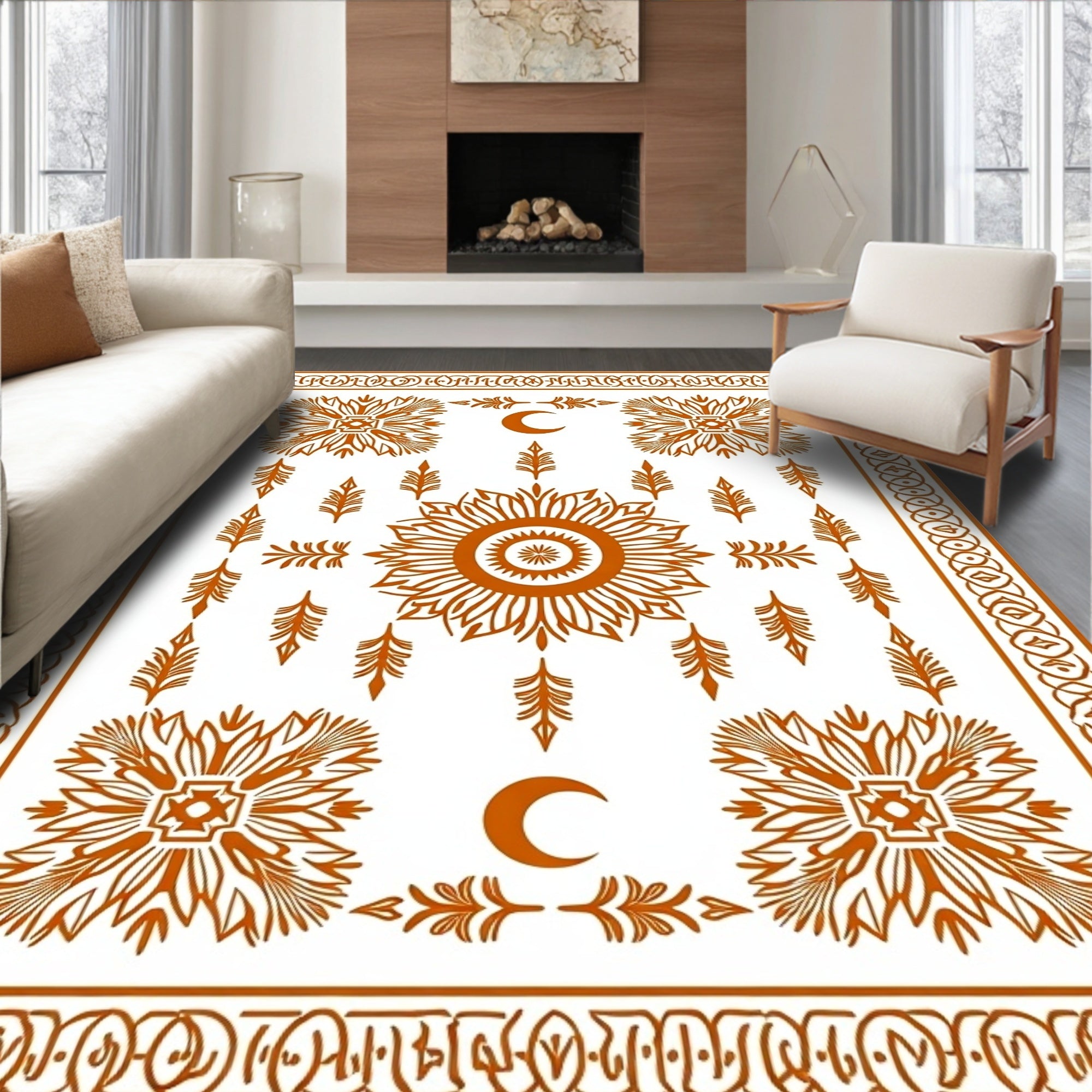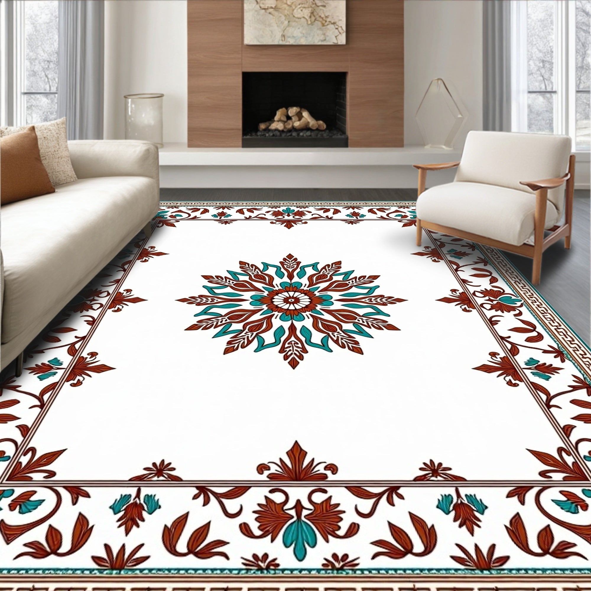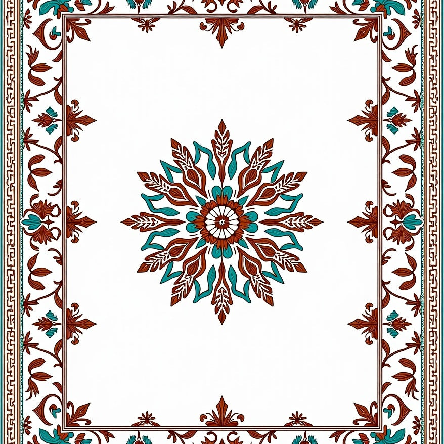 Interlocking Medallion Motif with Vintage Floral Accents(Brown)