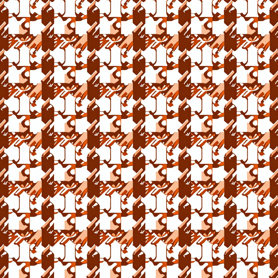 Modern Folk Art Flora Interlocking Lattice and Stylized Bloom(Brown)