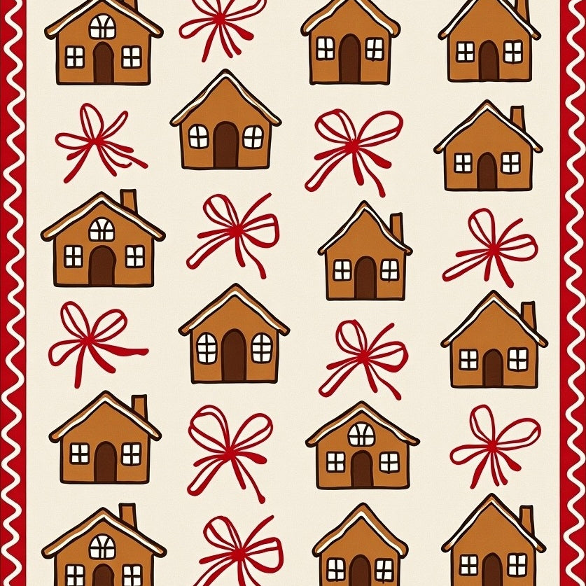 Nostalgic Gingerbread Village Scene Holiday with Canes(Brown)