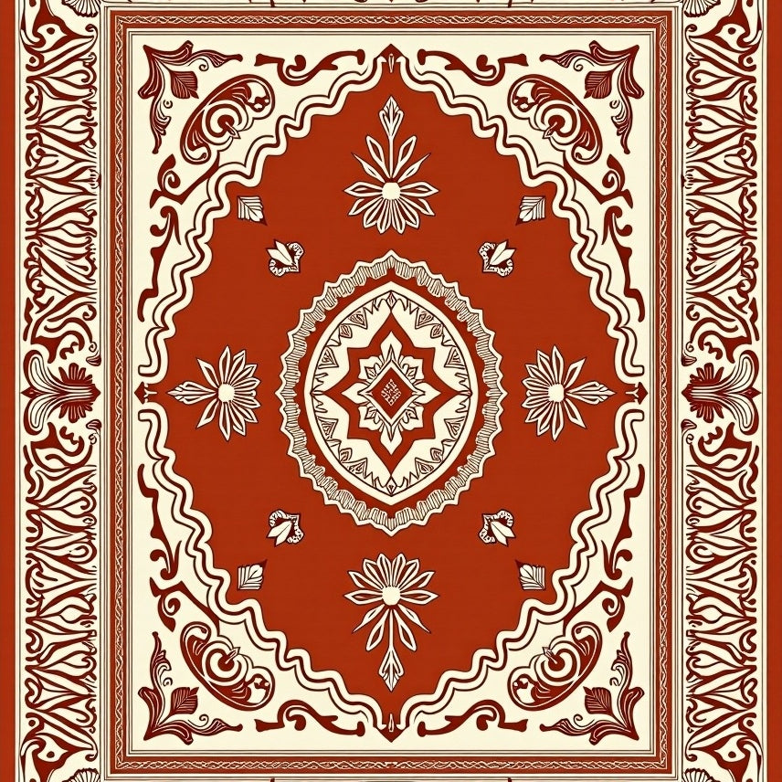 Vintage Medallion Tapestry with Fringe Accents Floor Covering(Brown)