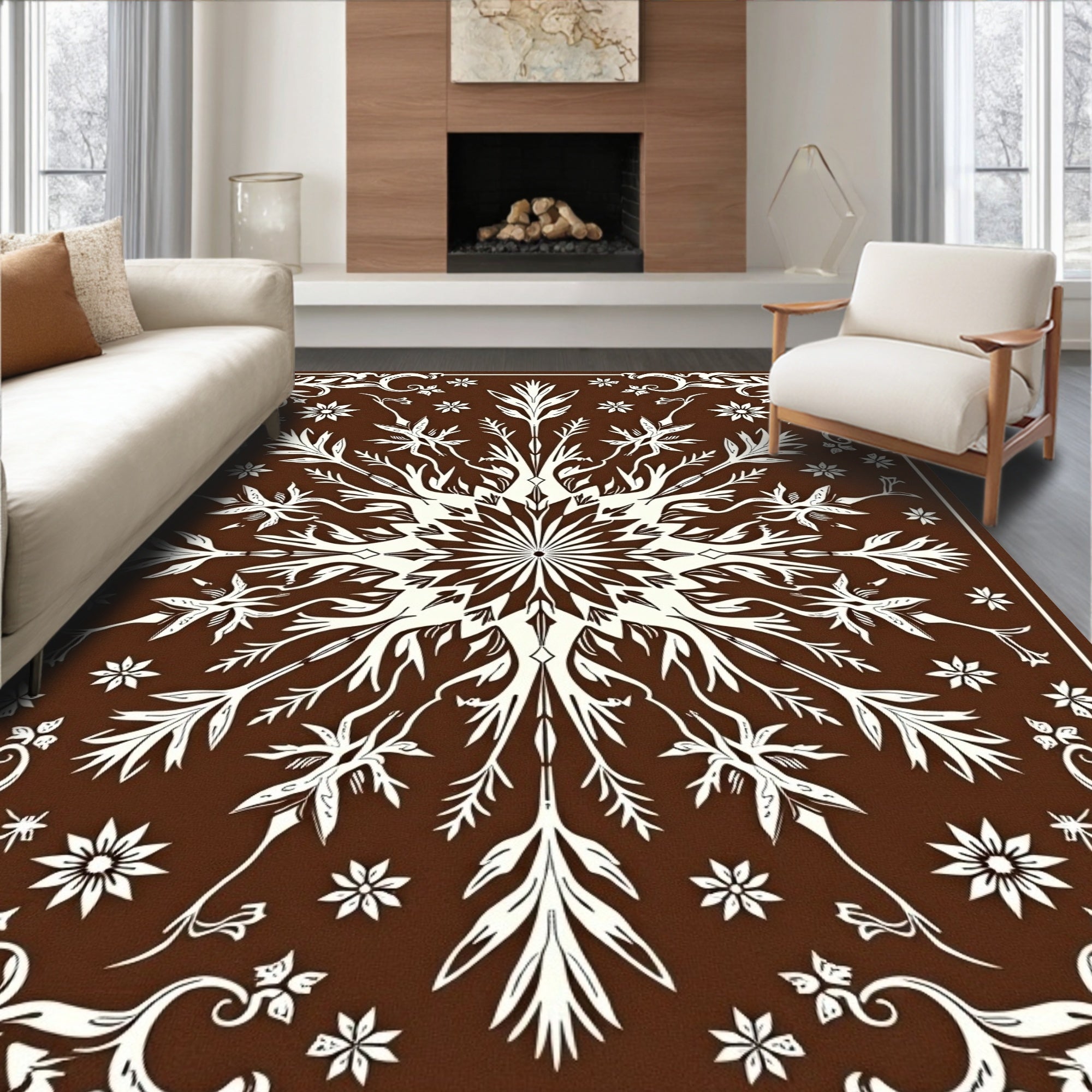 Enchanted Yuletide Path Showcasing Elegant Snowflake Arrangement(Brown)