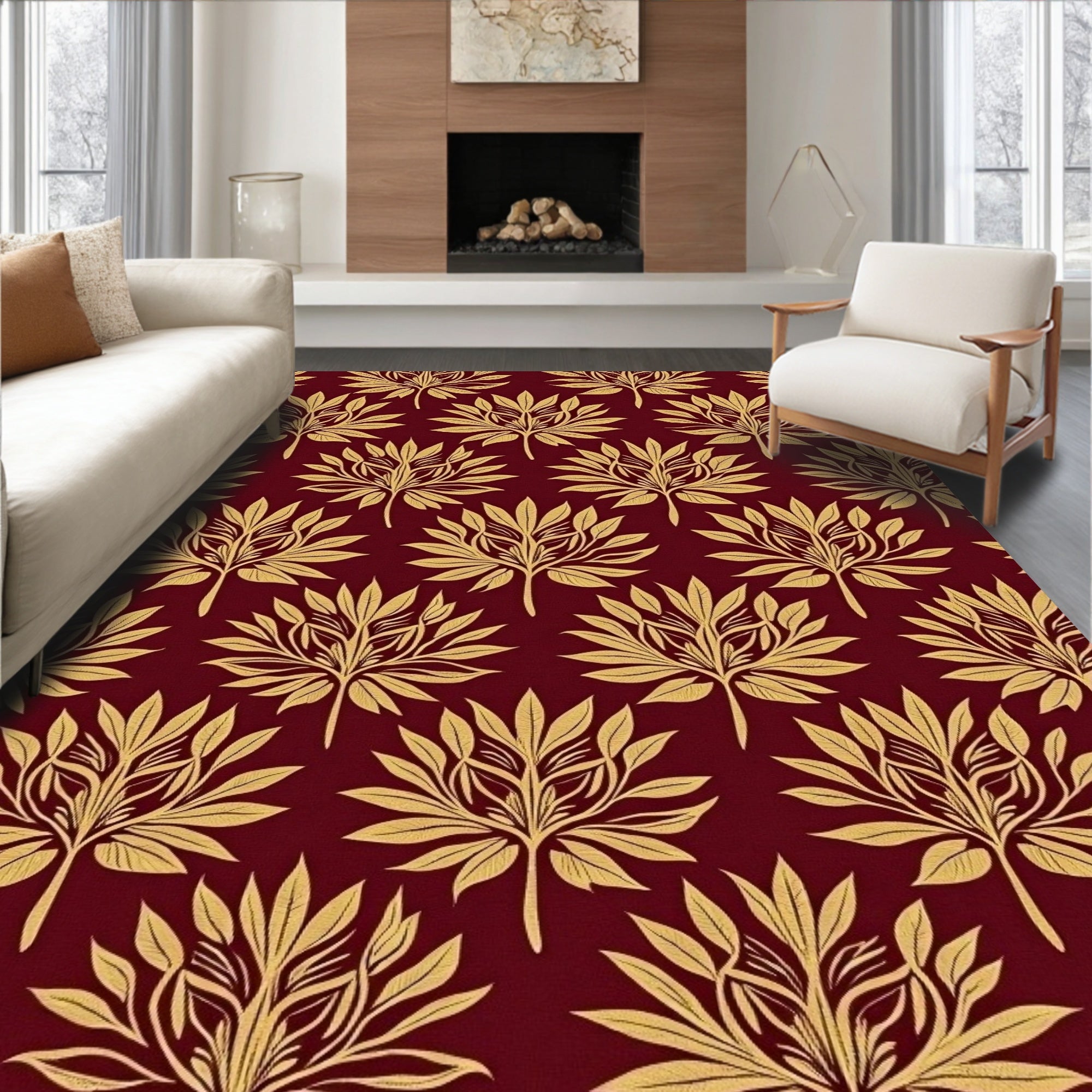 Whimsical Fall Floral Design With Interlocking Abstract Leaf(Brown)