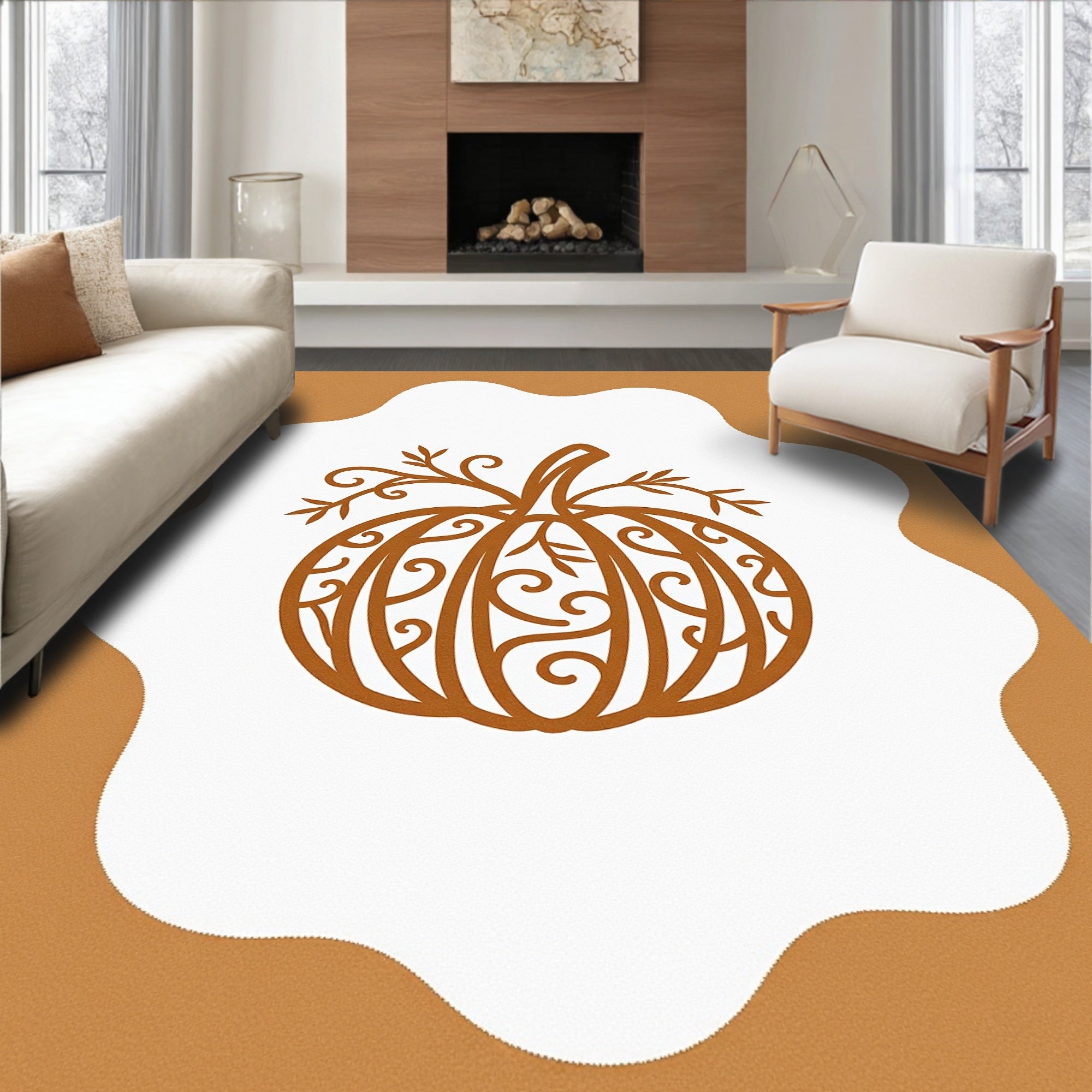 Autumn Harvest Pumpkin Cloud Shaped Irregular Throw(Brown)