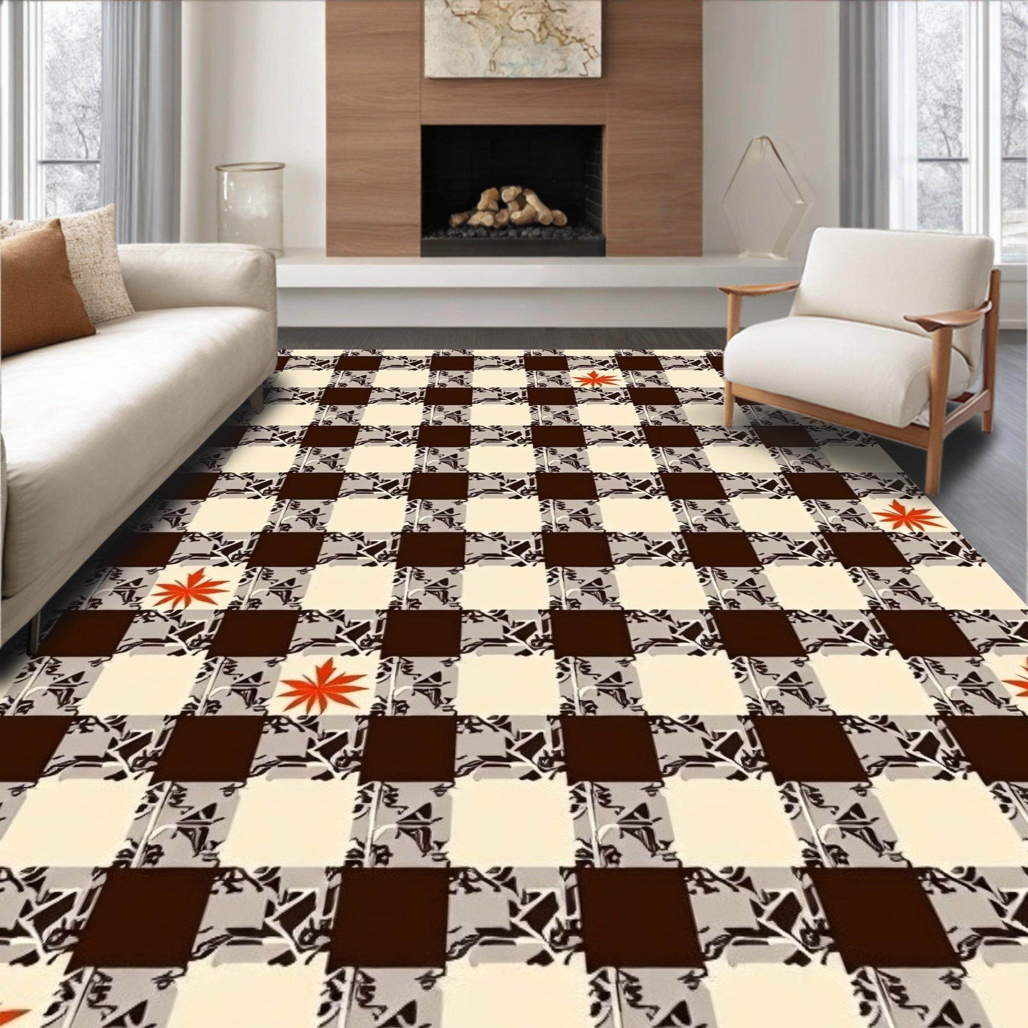 Buffalo Plaid Thanksgiving Entrance Featuring Bold Checker Motifs(Brown)