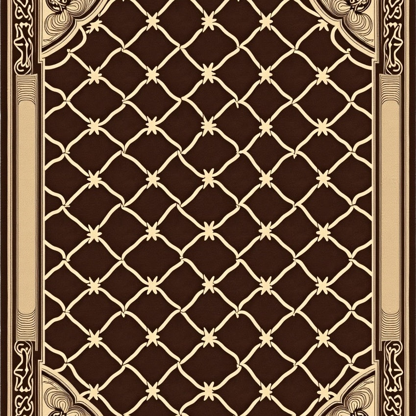 with Floral Scrollwork and Interlocking Lattice (Brown)