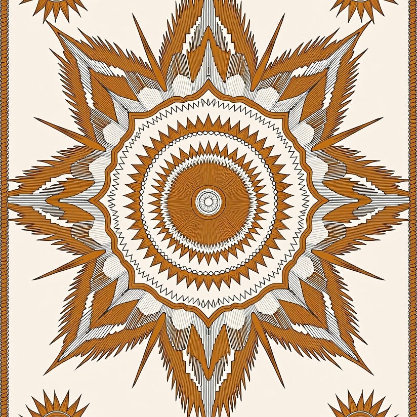 Burst Medallion Traditional Heritage Folk Art Tapestry Style (Brown)