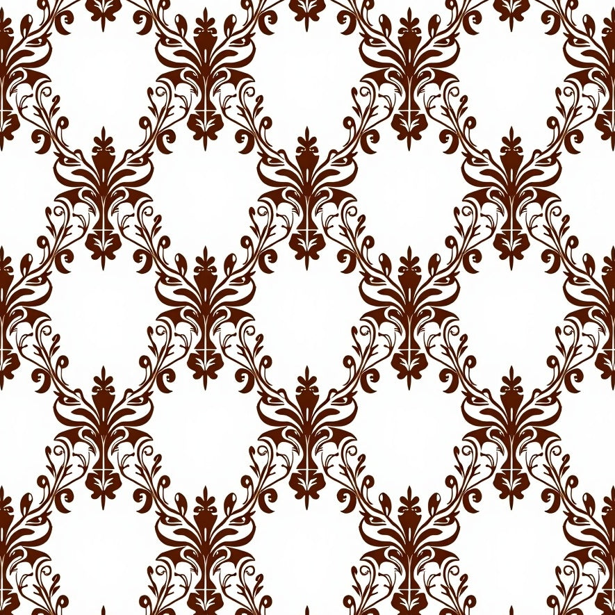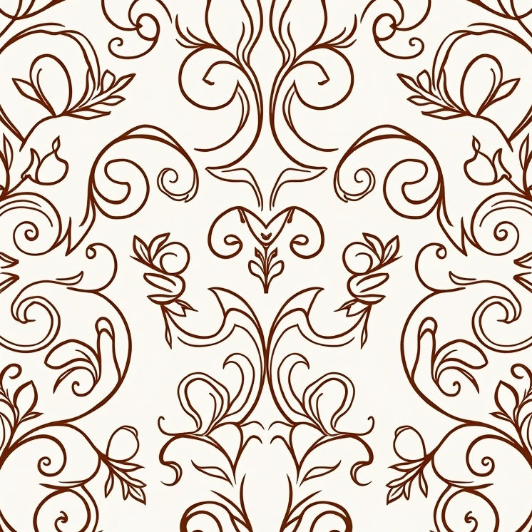 Classic Damask Scroll with Decorative Vine Details (Brown)