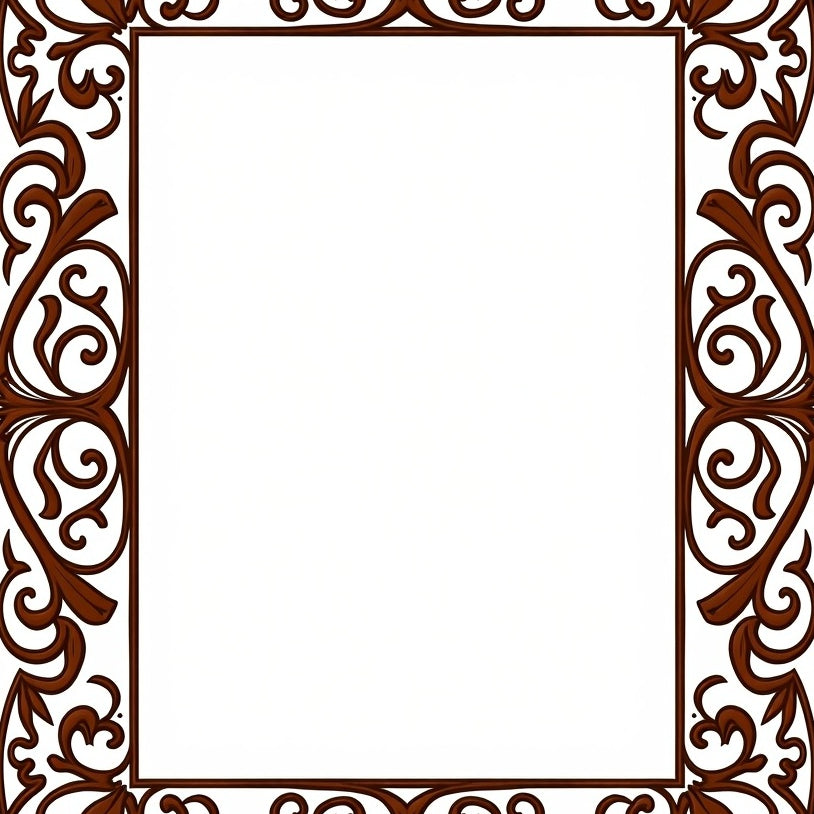 Medallion Flourish Design with Botanical Border Frame (Brown)