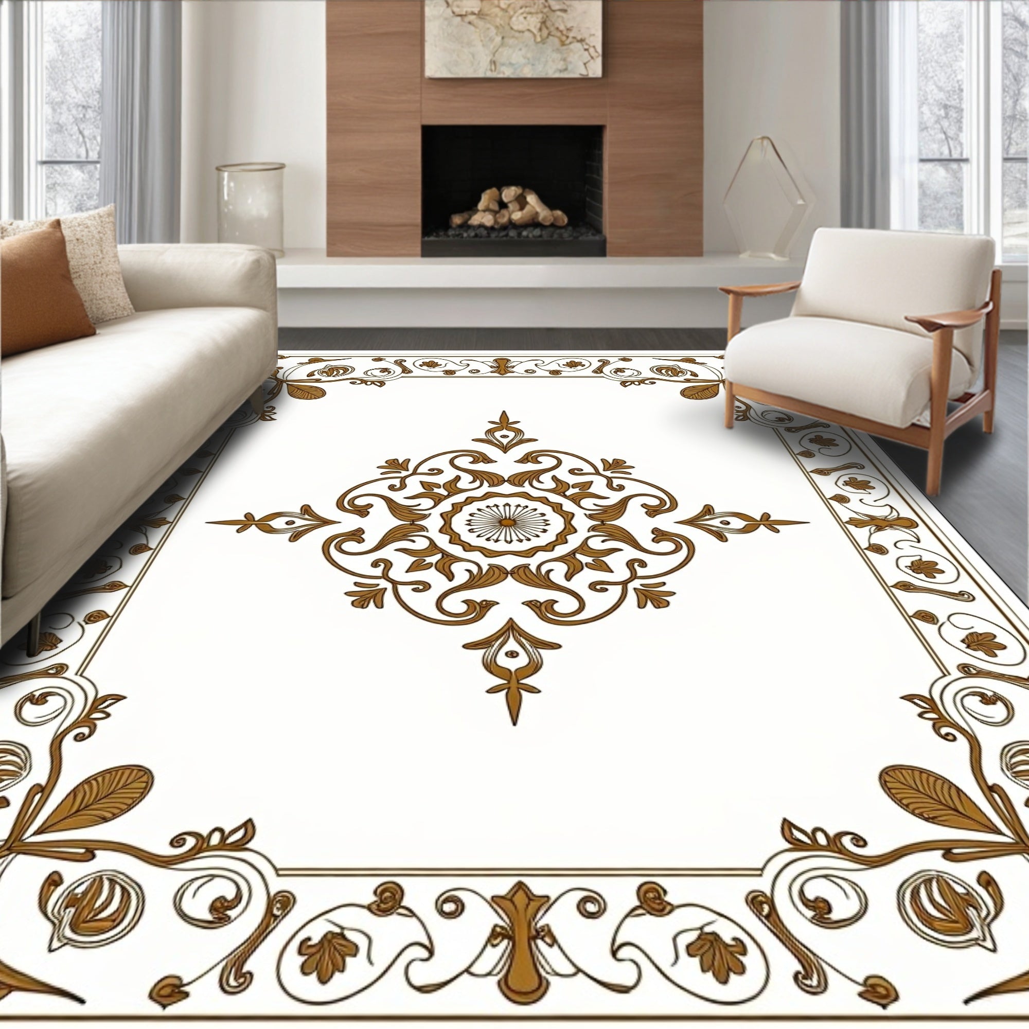 Elegant Baroque Floral Medallion with Ornate Scrollwork Design (Brown)