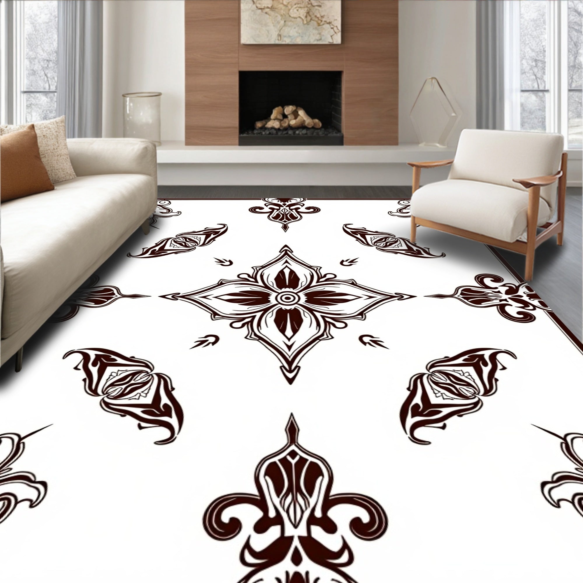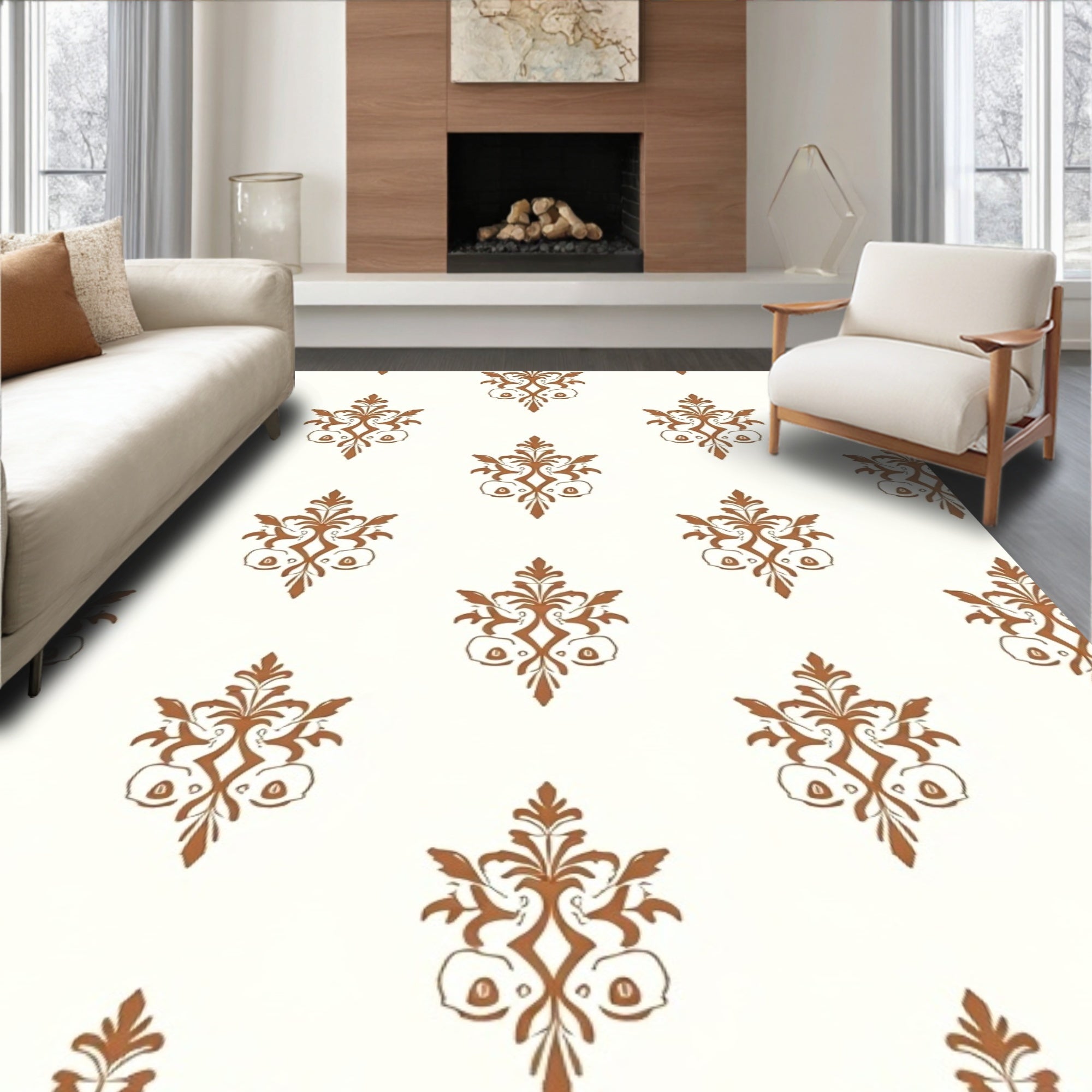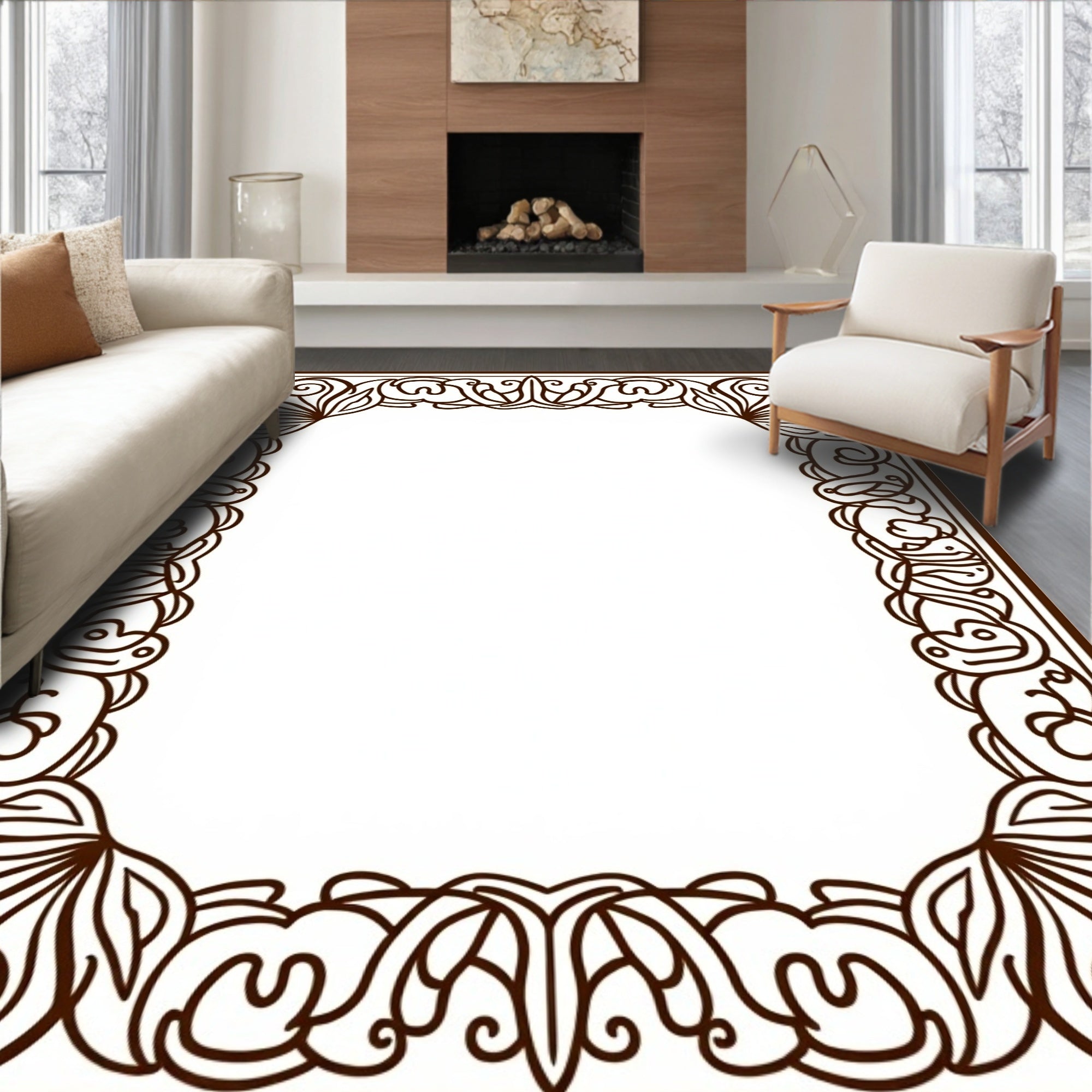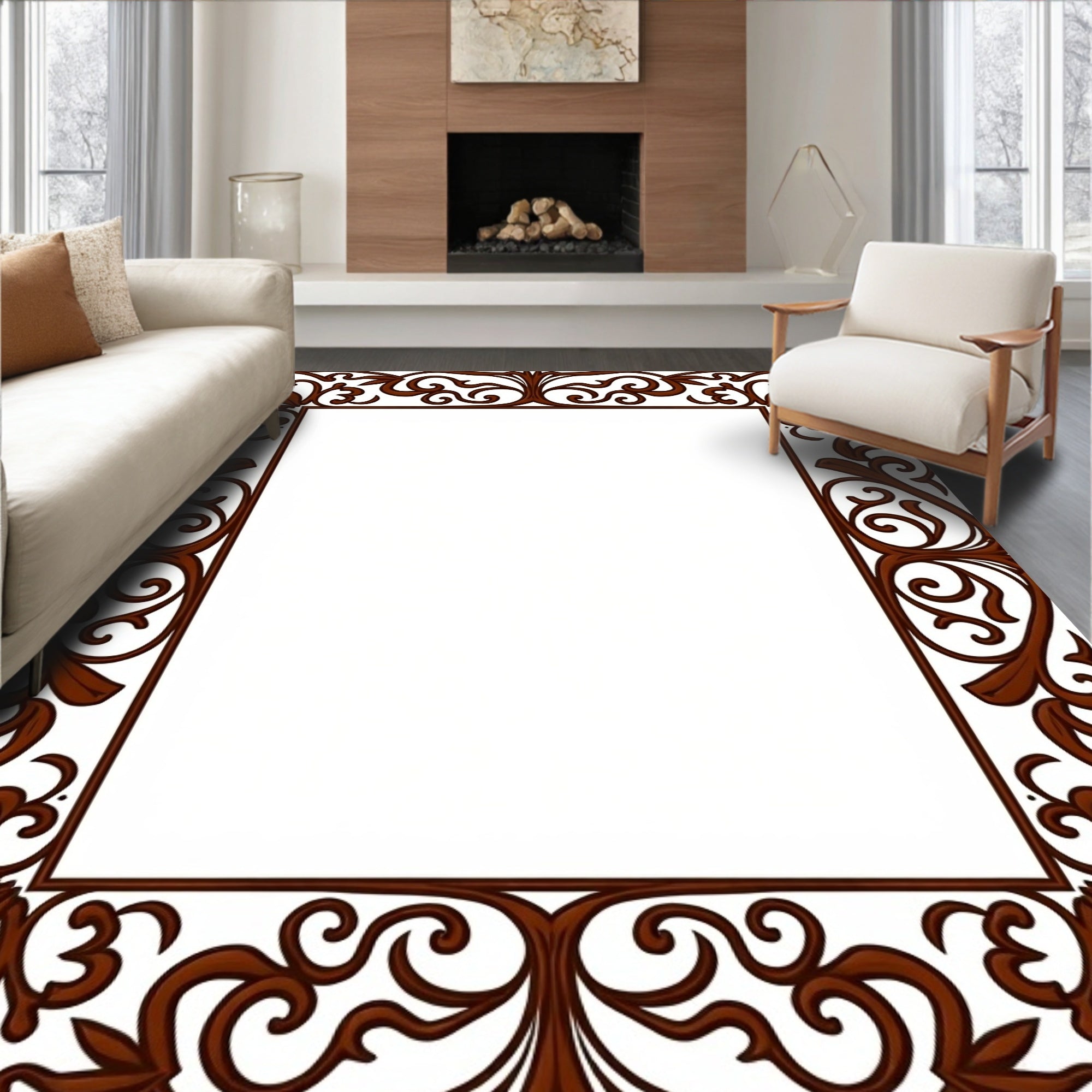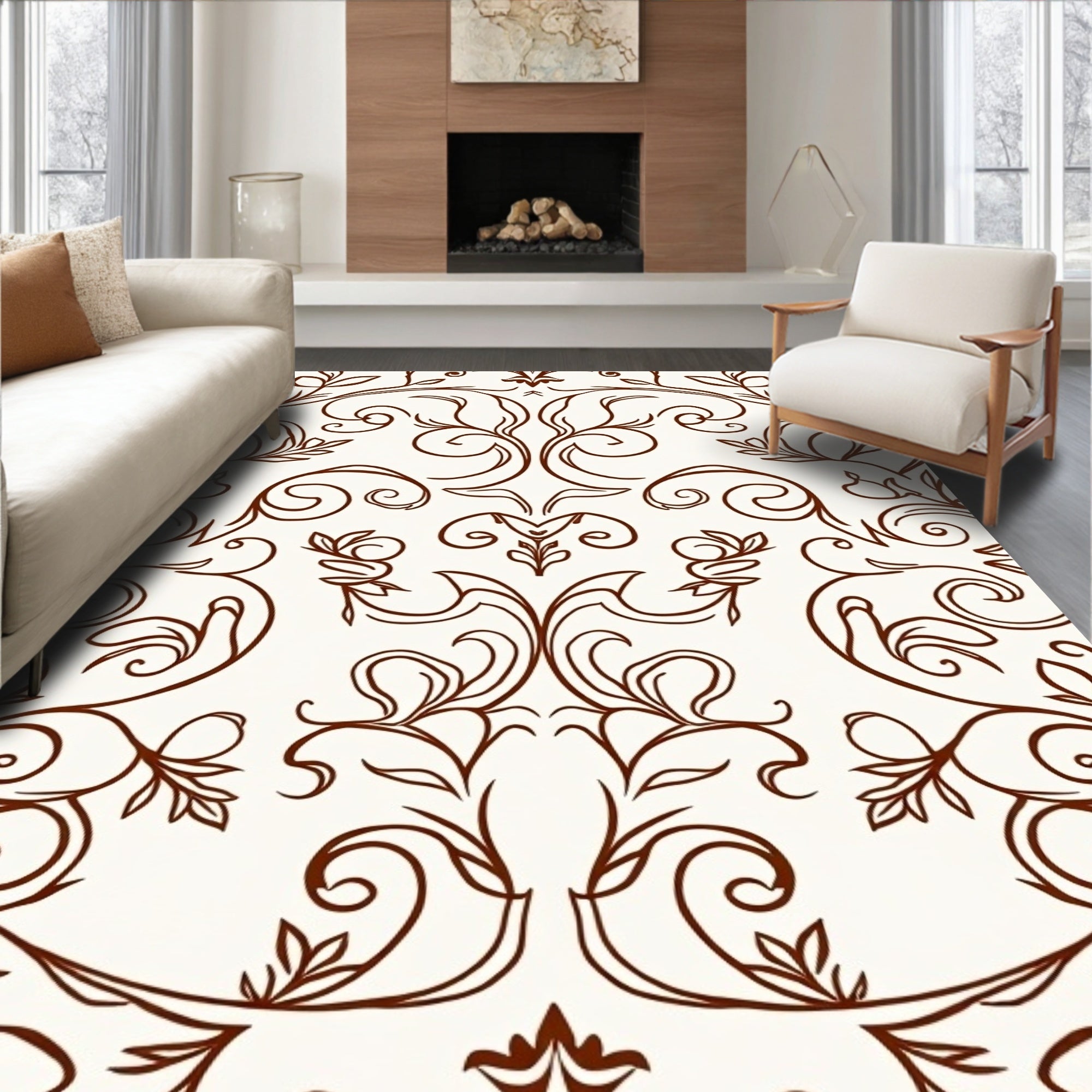 Classic Botanical Scroll Work with Vine Motif Non Skid Foundation (Brown)