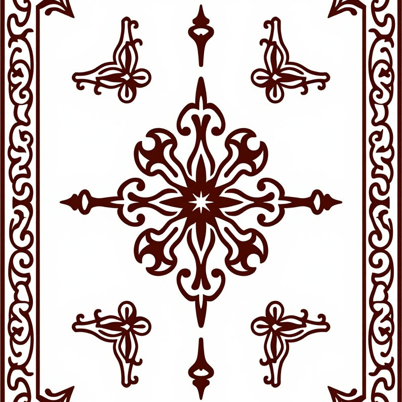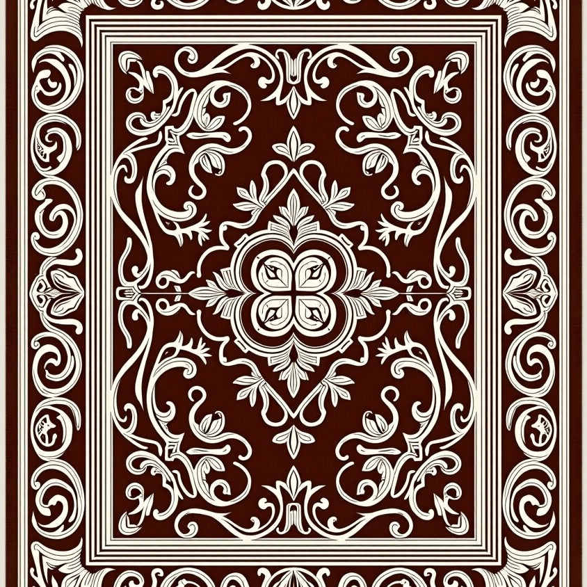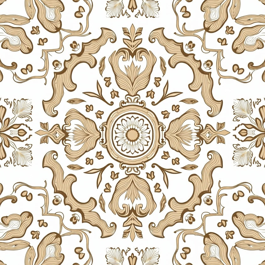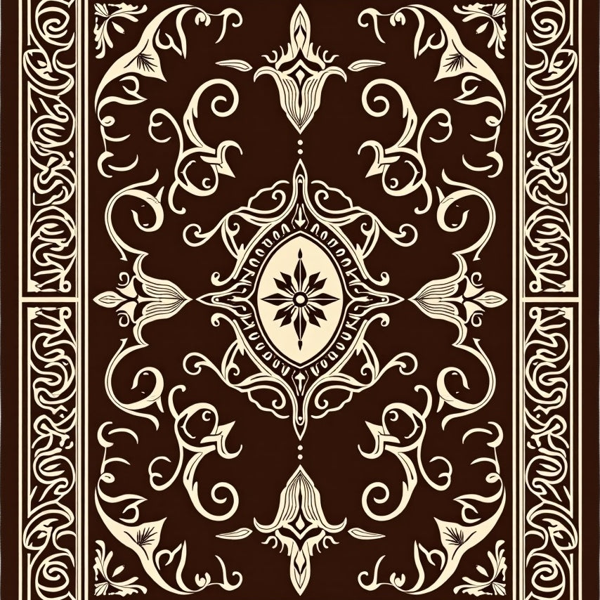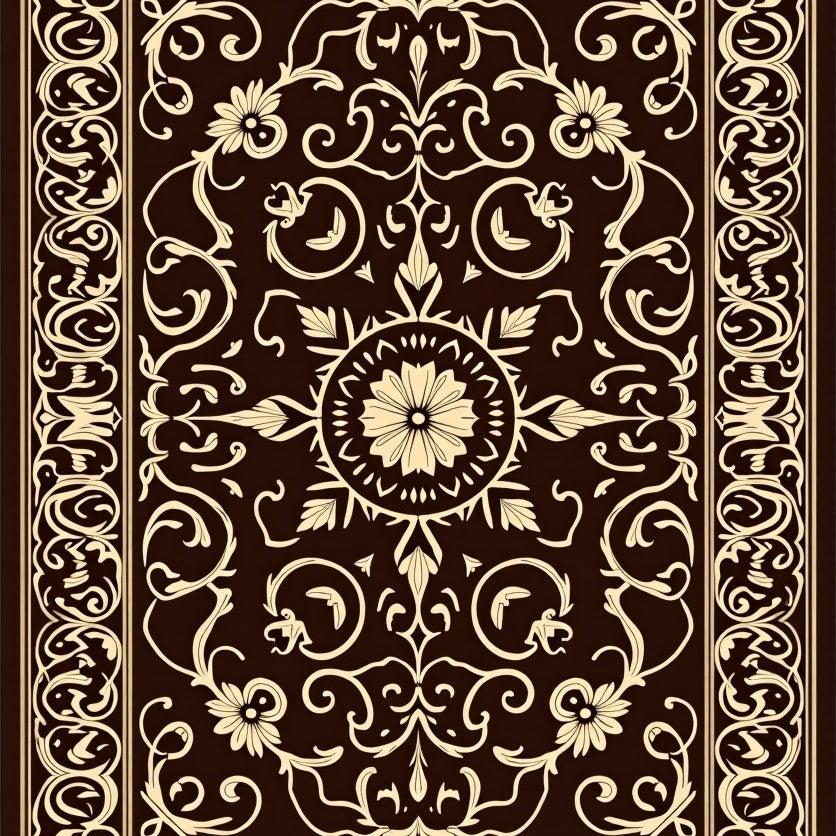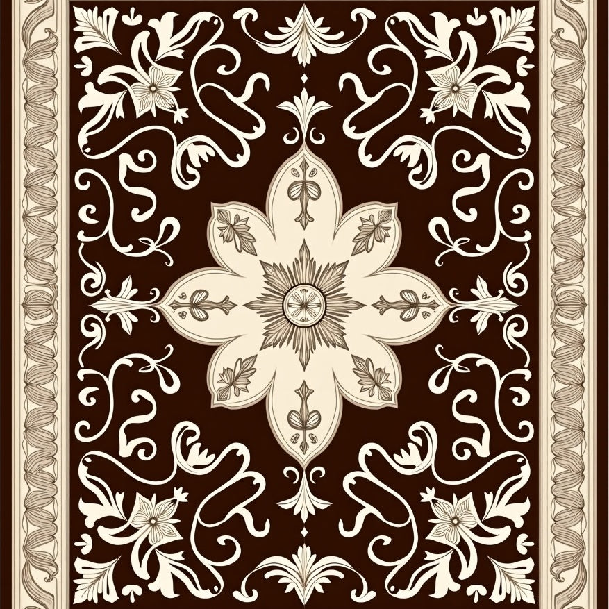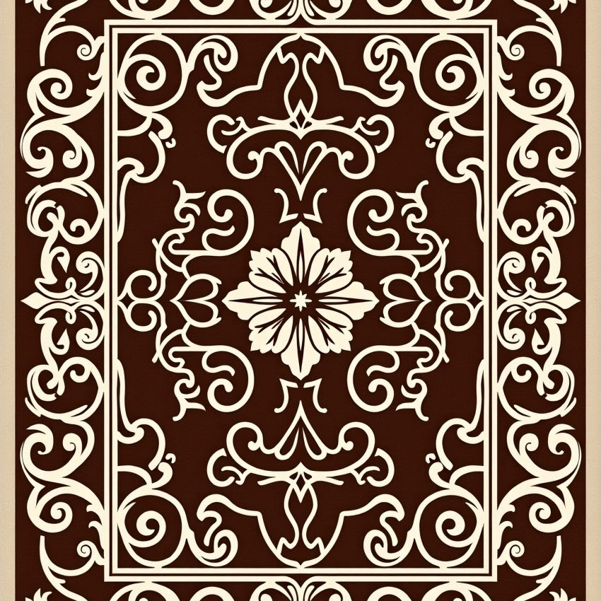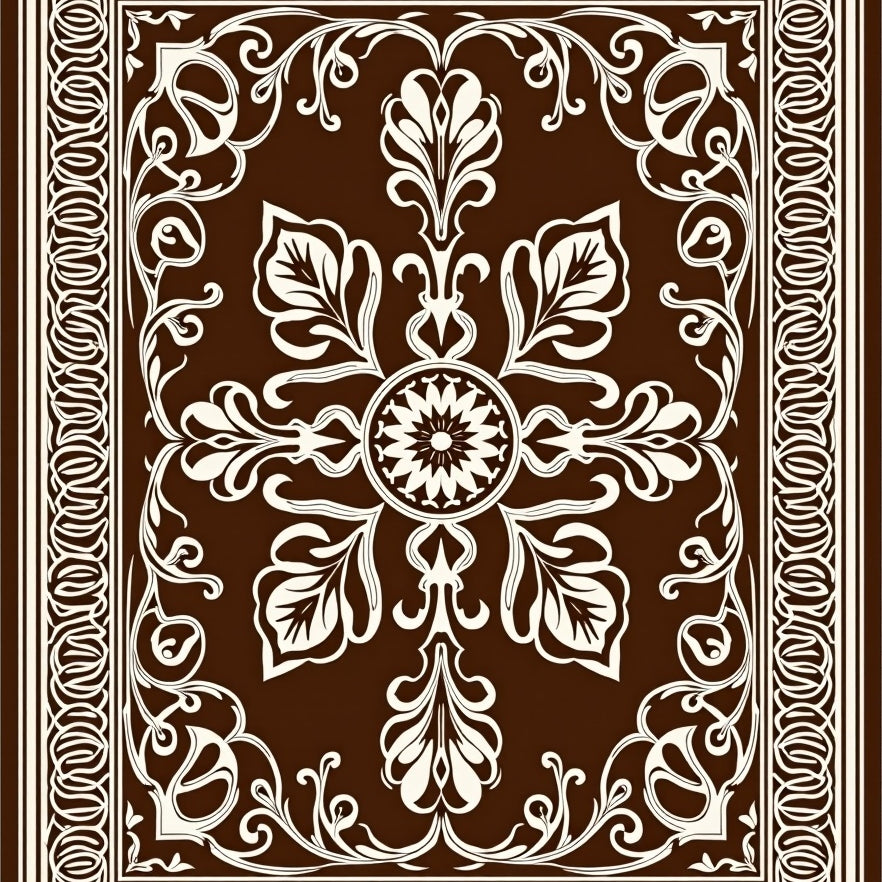 Ornate Medallion Scrollwork with Vintage Botanical Accents (Brown)