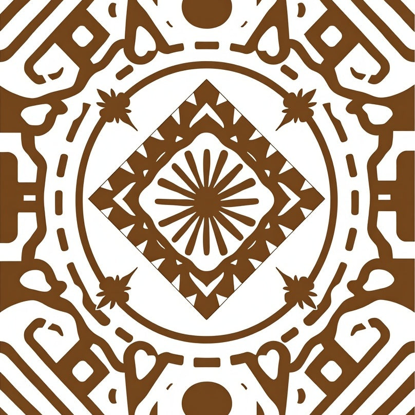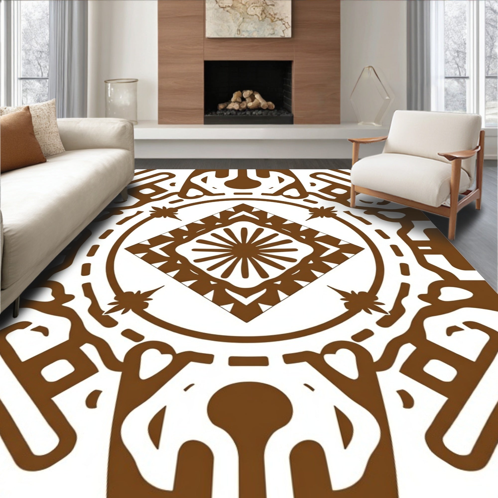 Ornate Medallion Design with Interlocking Scrollwork (Brown)