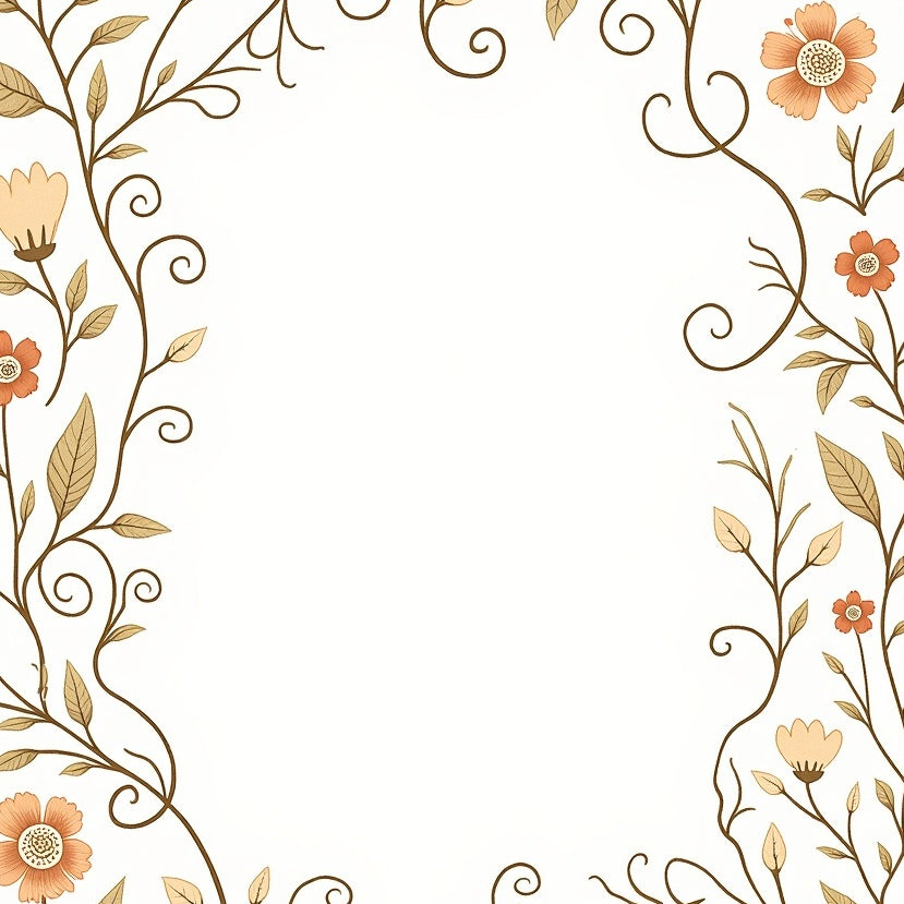 Botanical with Delicate Wildflower Sprays and Curved Vines (Brown)