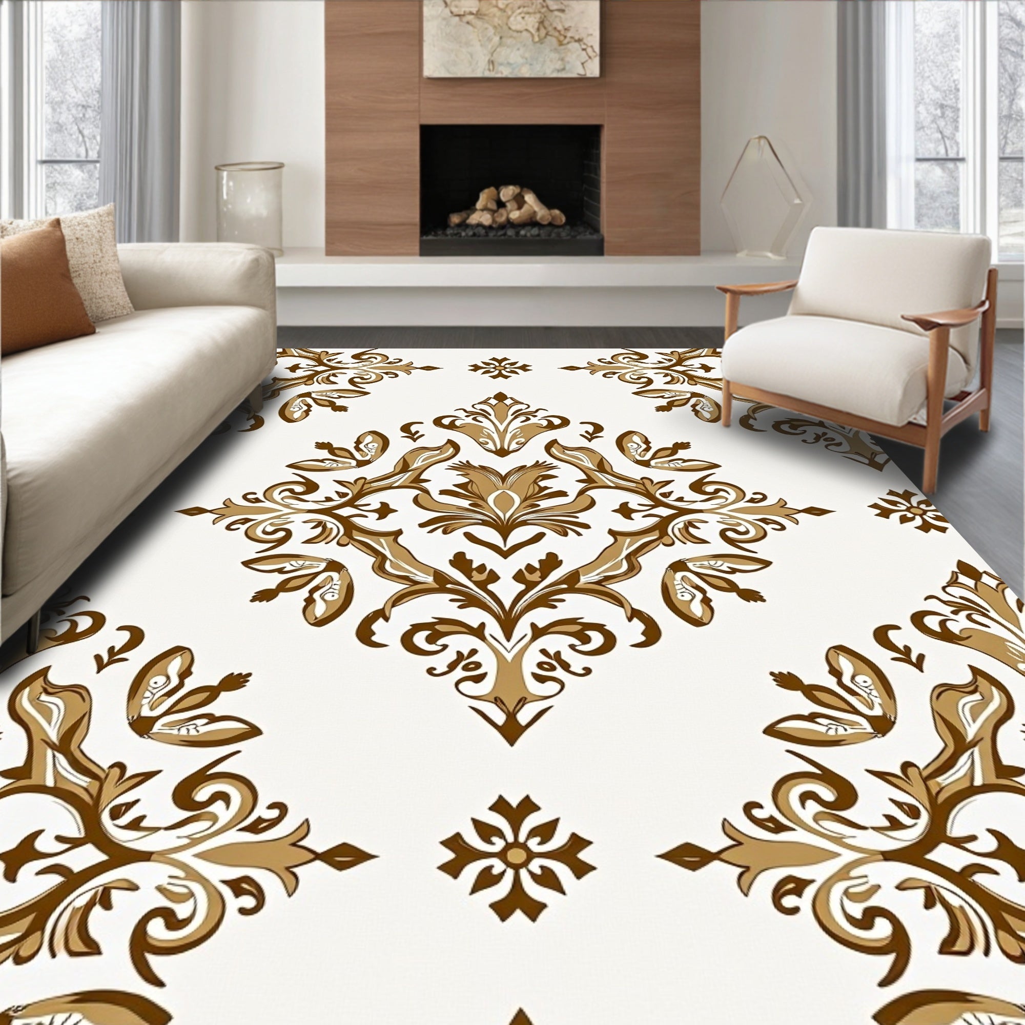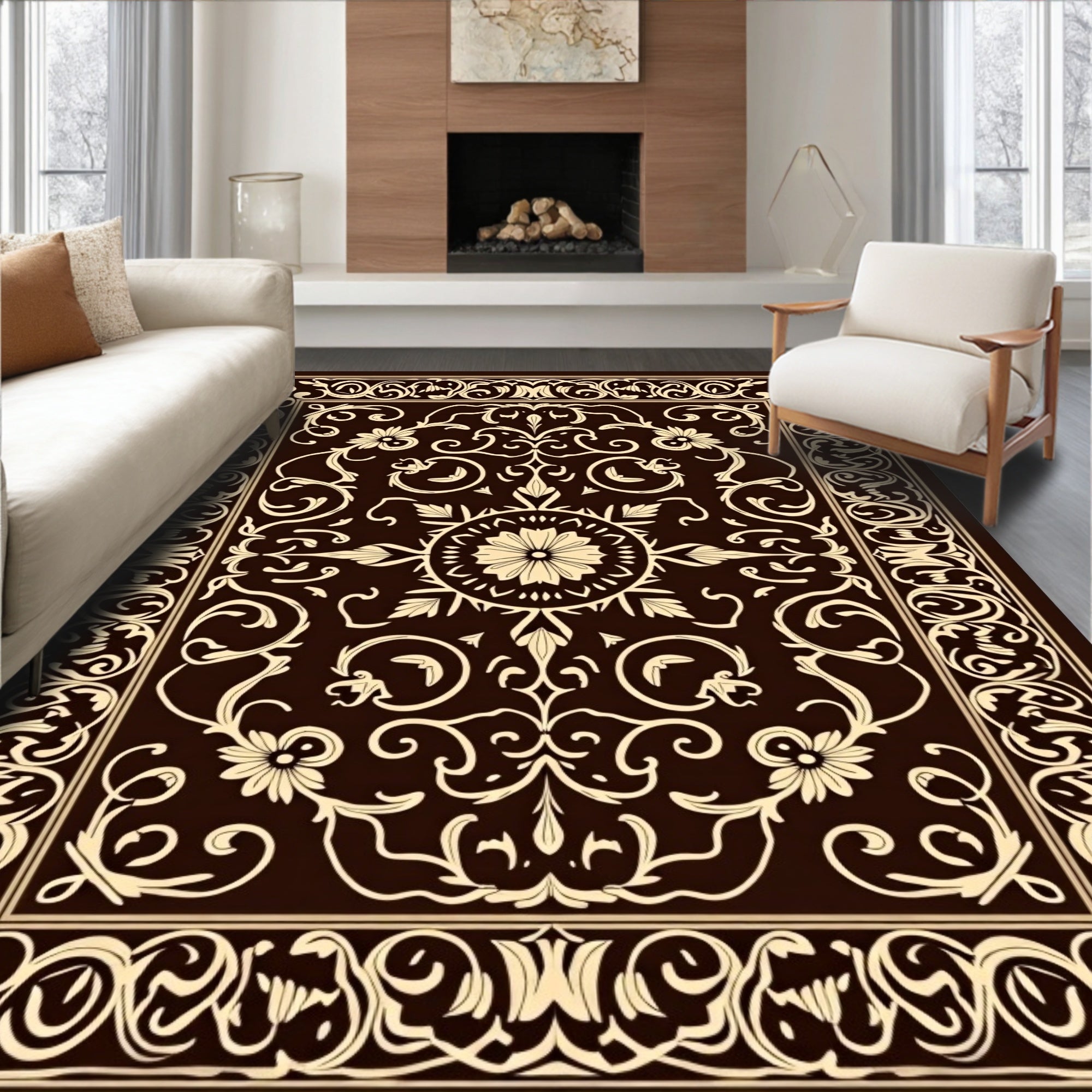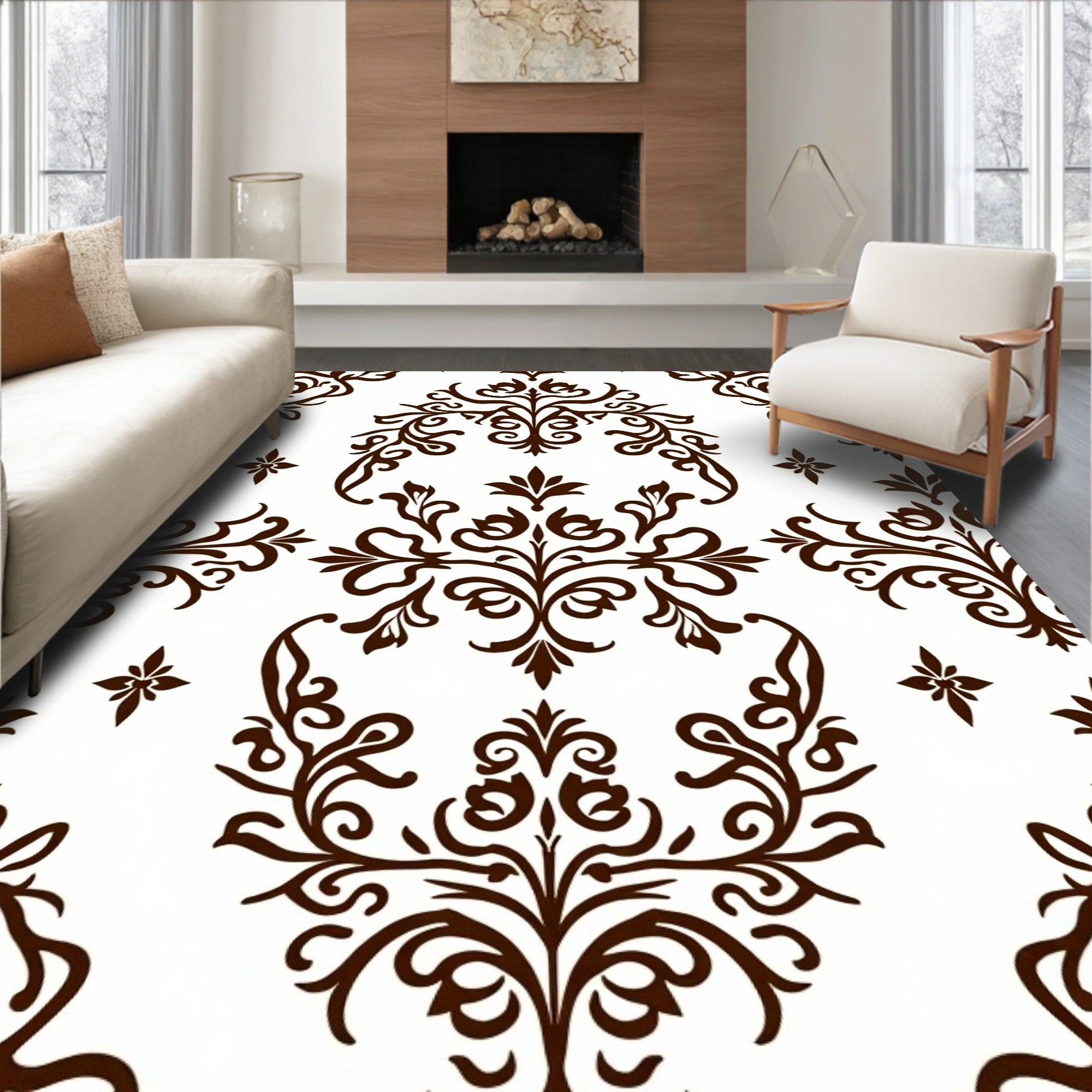 Elegant Baroque Scroll Damask Slip Resistant Path Corridor (Brown)