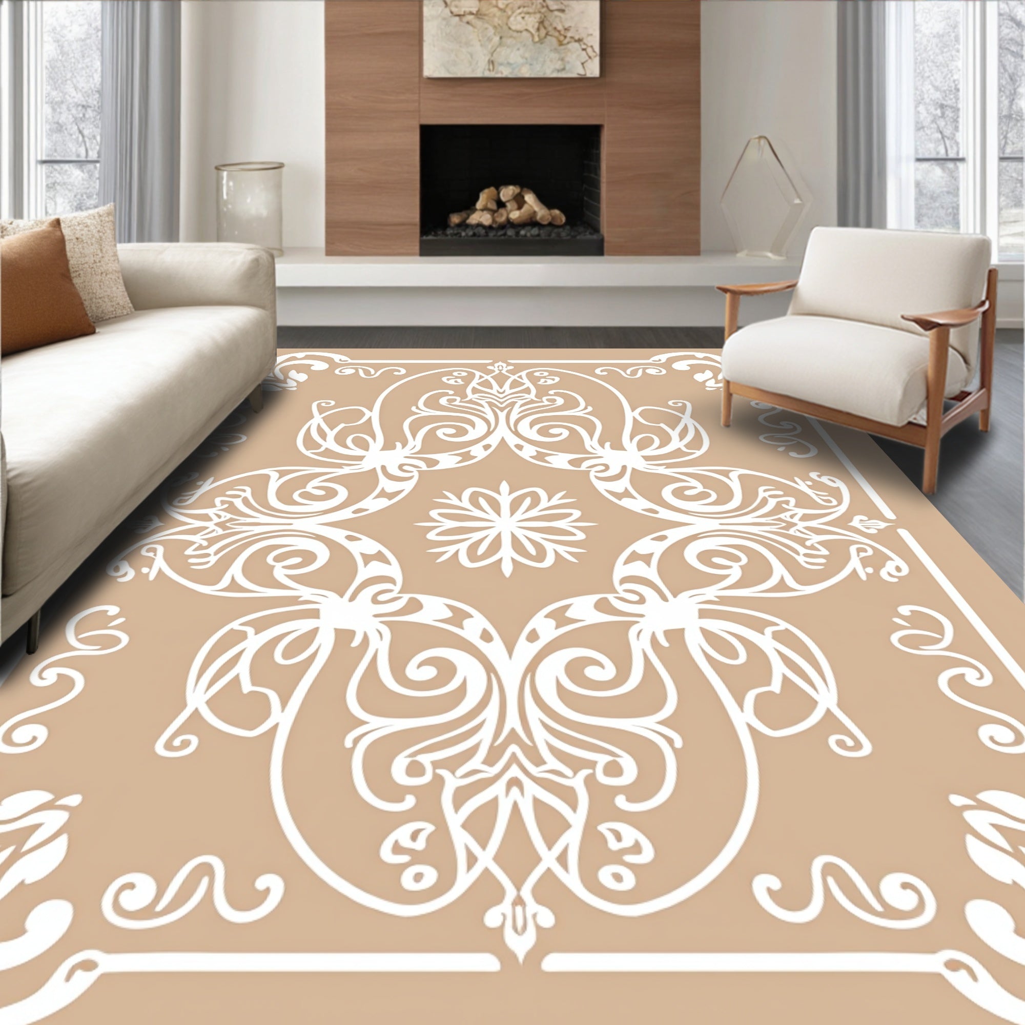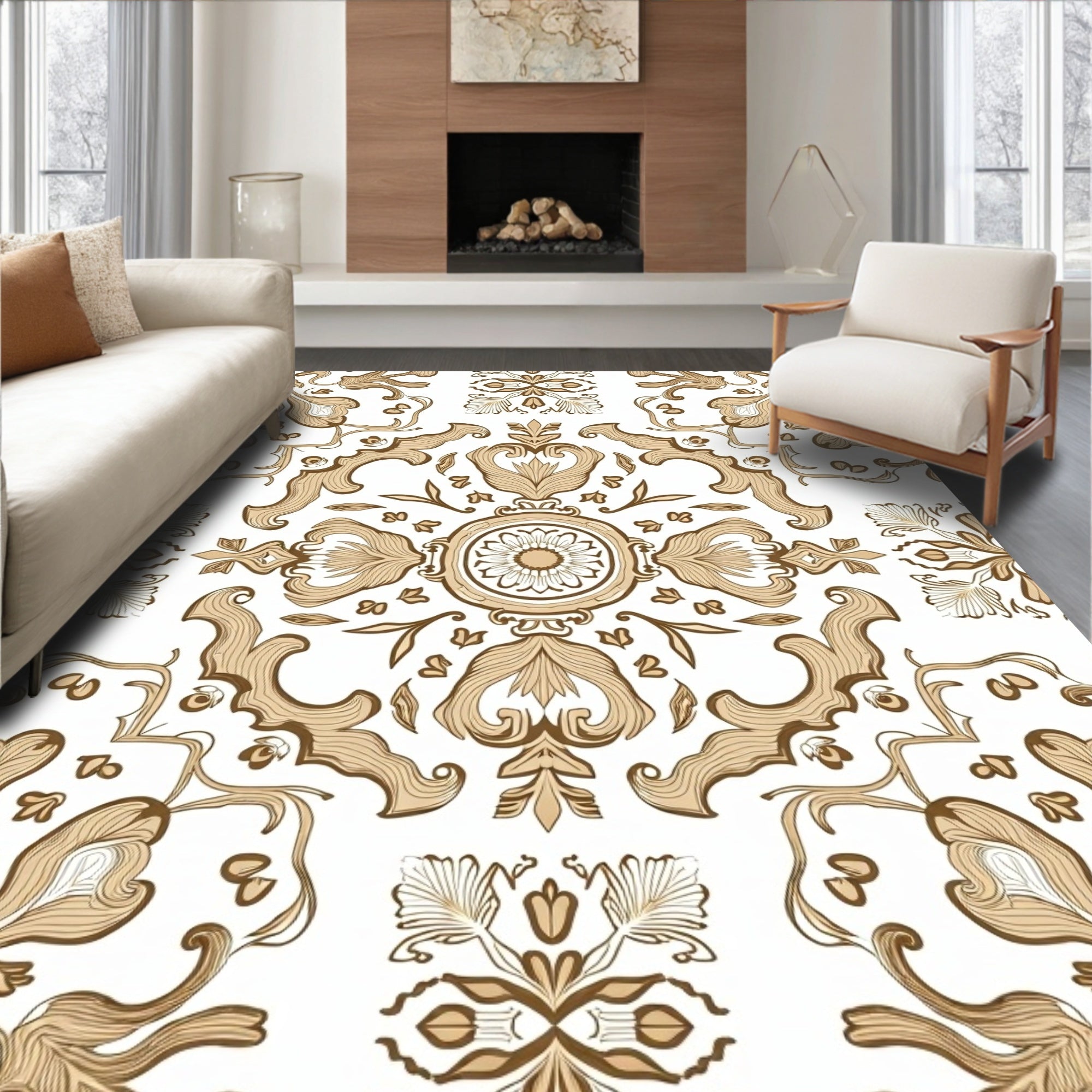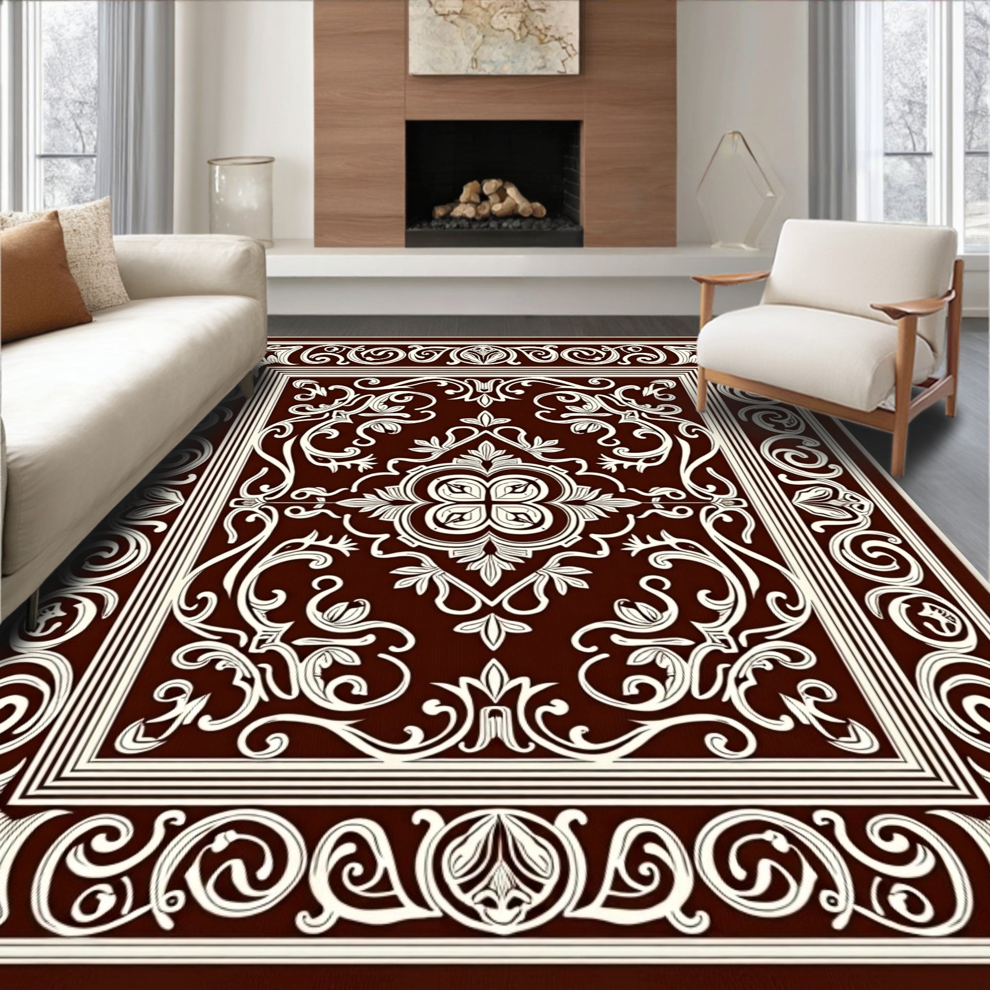 Elegant Baroque Scroll Damask Slip Resistant Path Corridor (Brown)