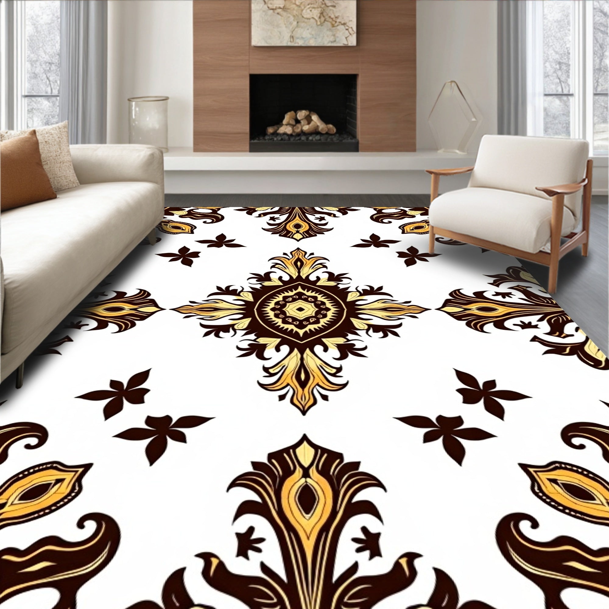 Paisley Teardrop Design Non Slide Entrance Floor Cover (Brown)