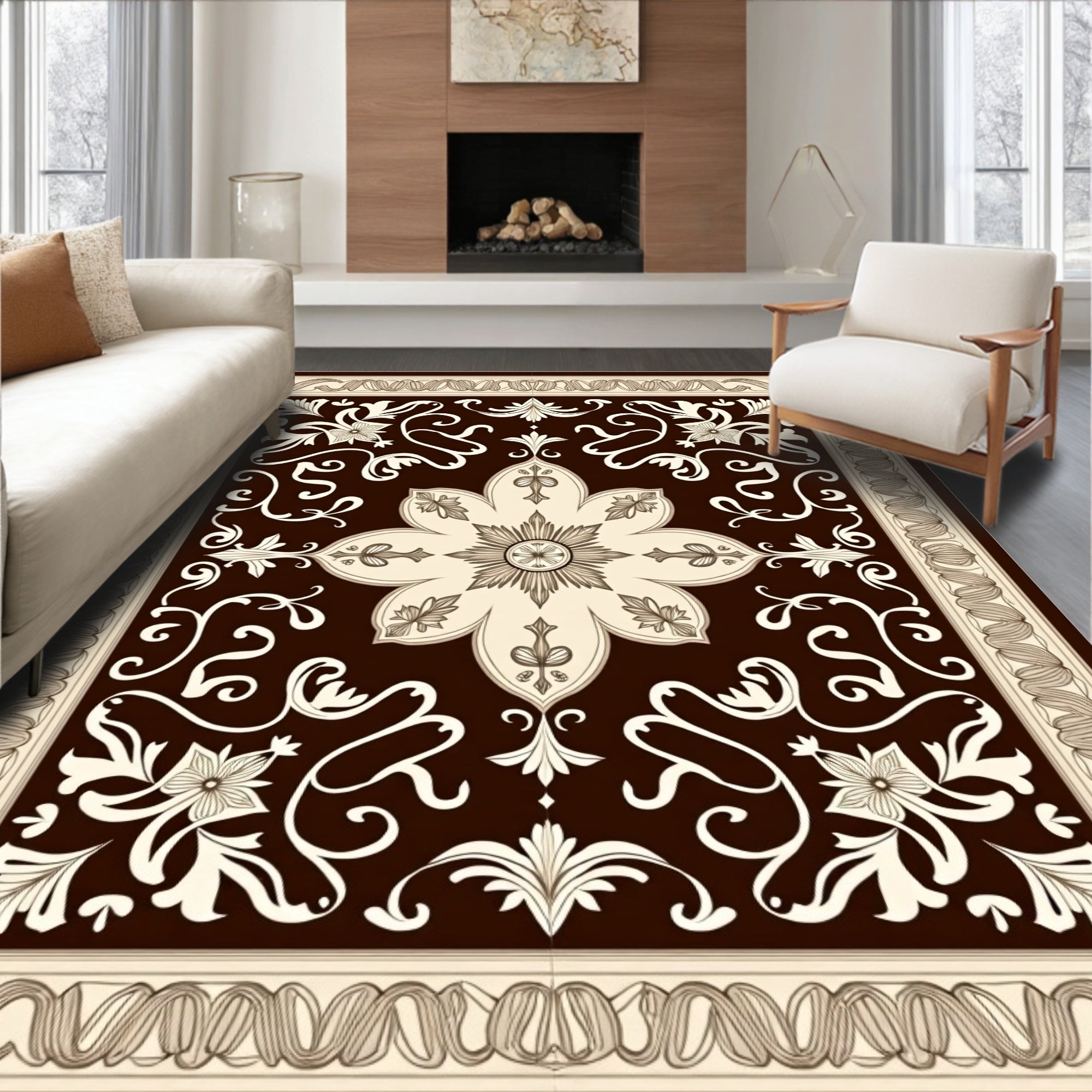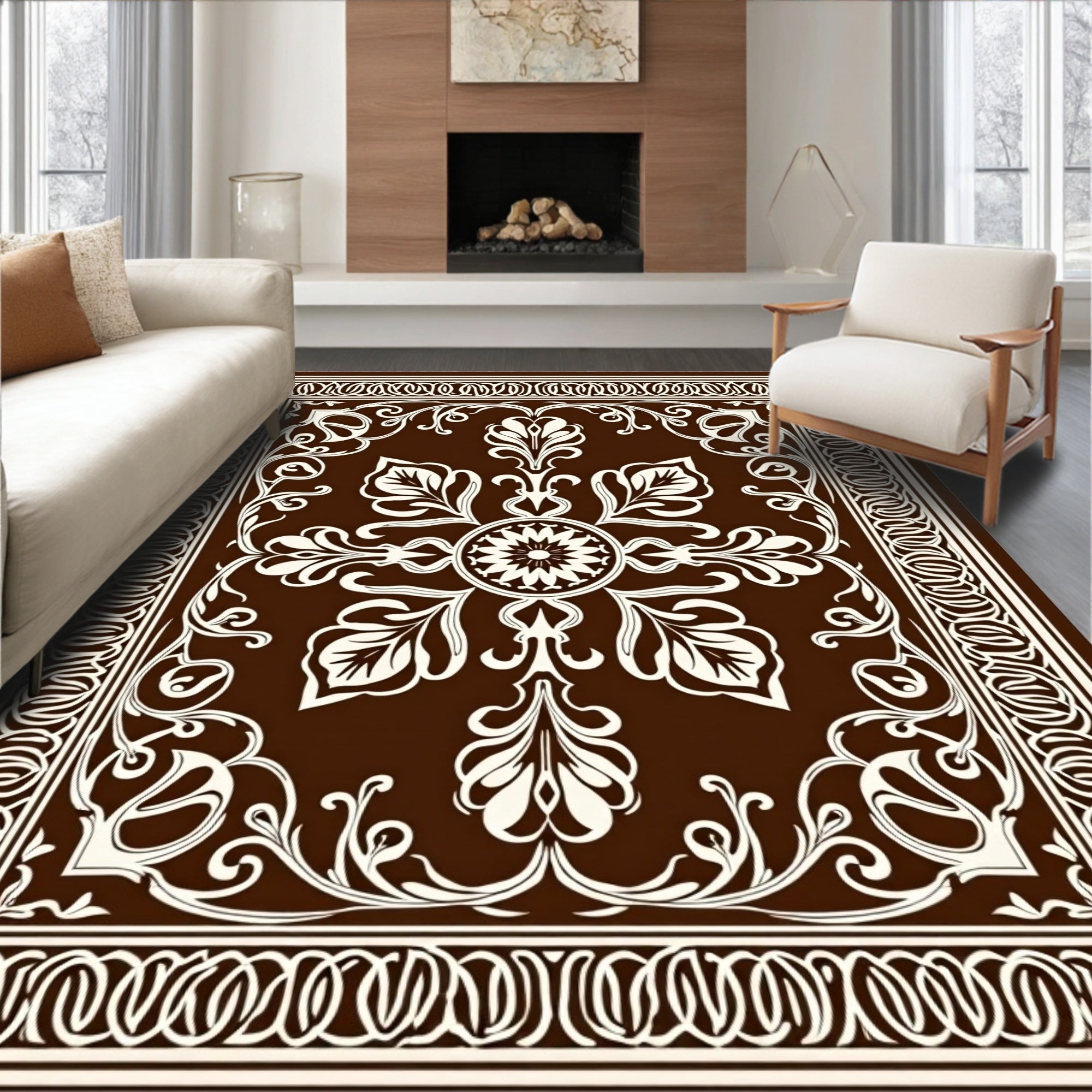 Vintage Botanical Medallion Non Shedding Easy Care (Brown)