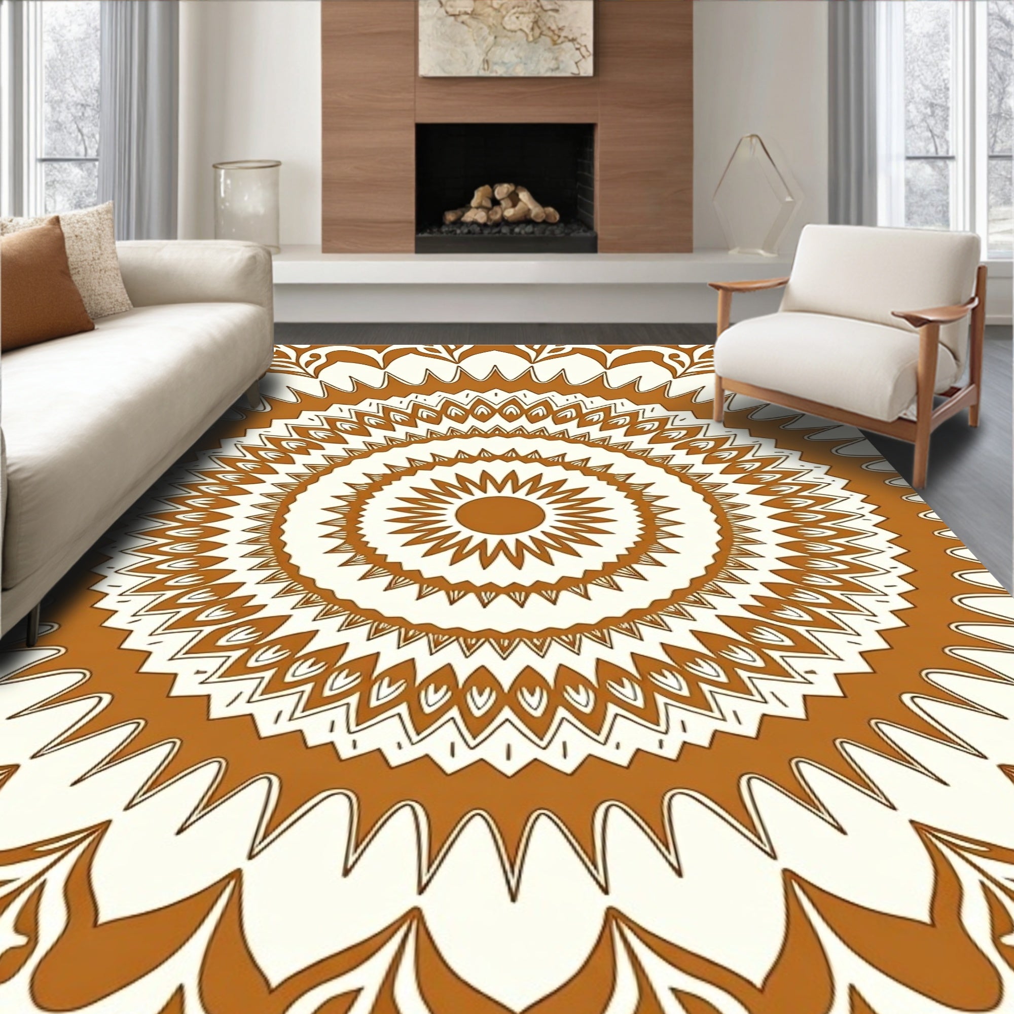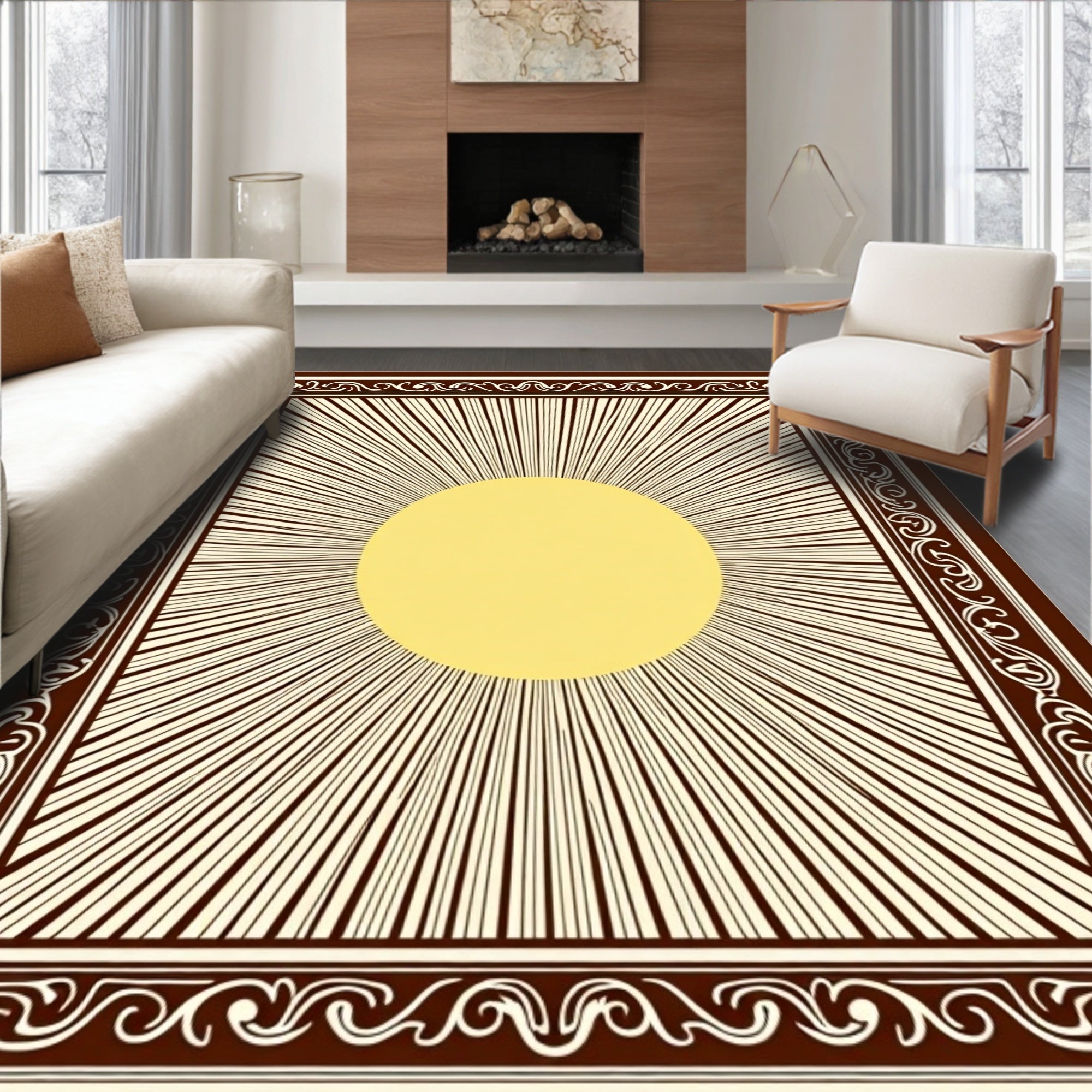 Sunburst Radial Medallion Vintage Charm Elegant Decorative Waves (Brown)