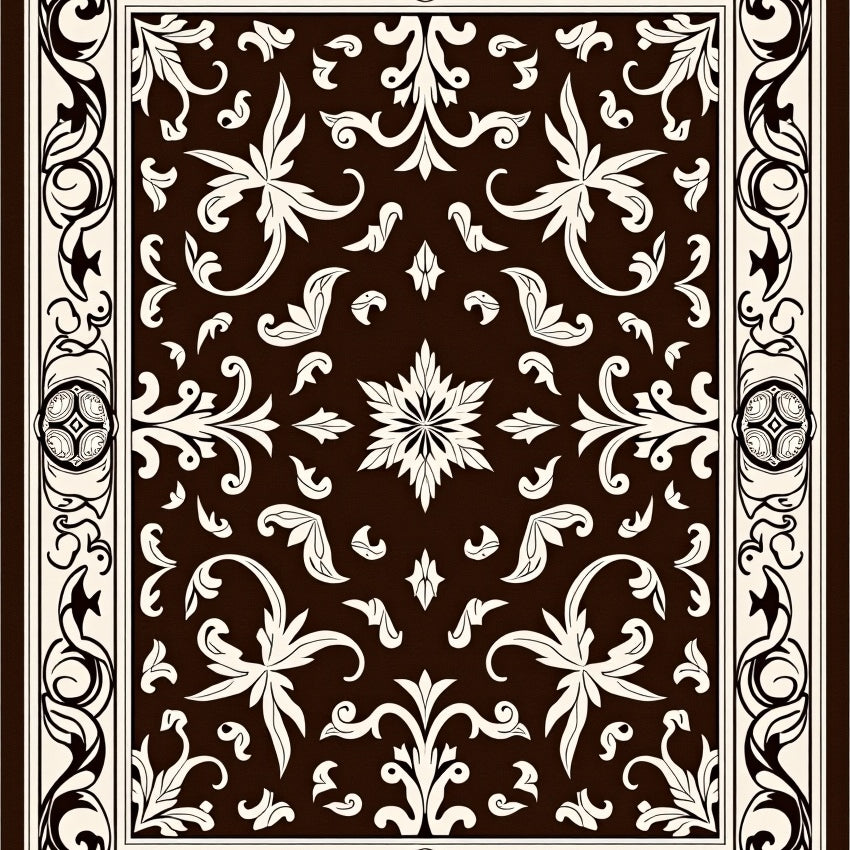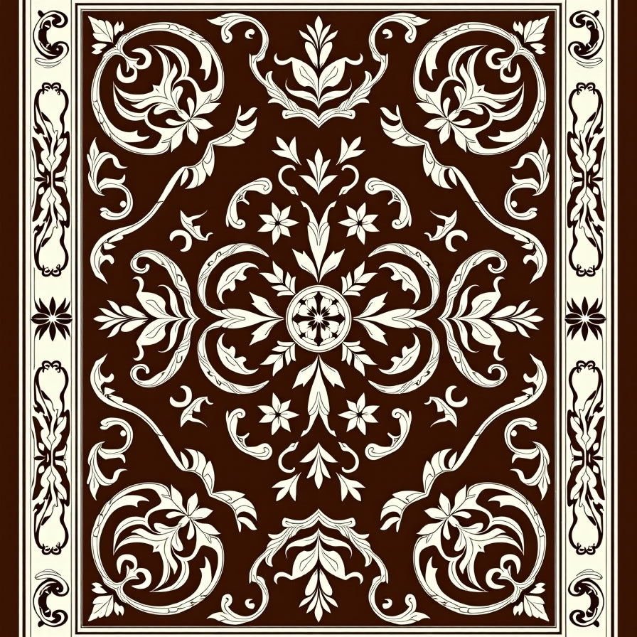 Vintage Medallion with Ornate Floral Symmetrical Motifs (Brown)