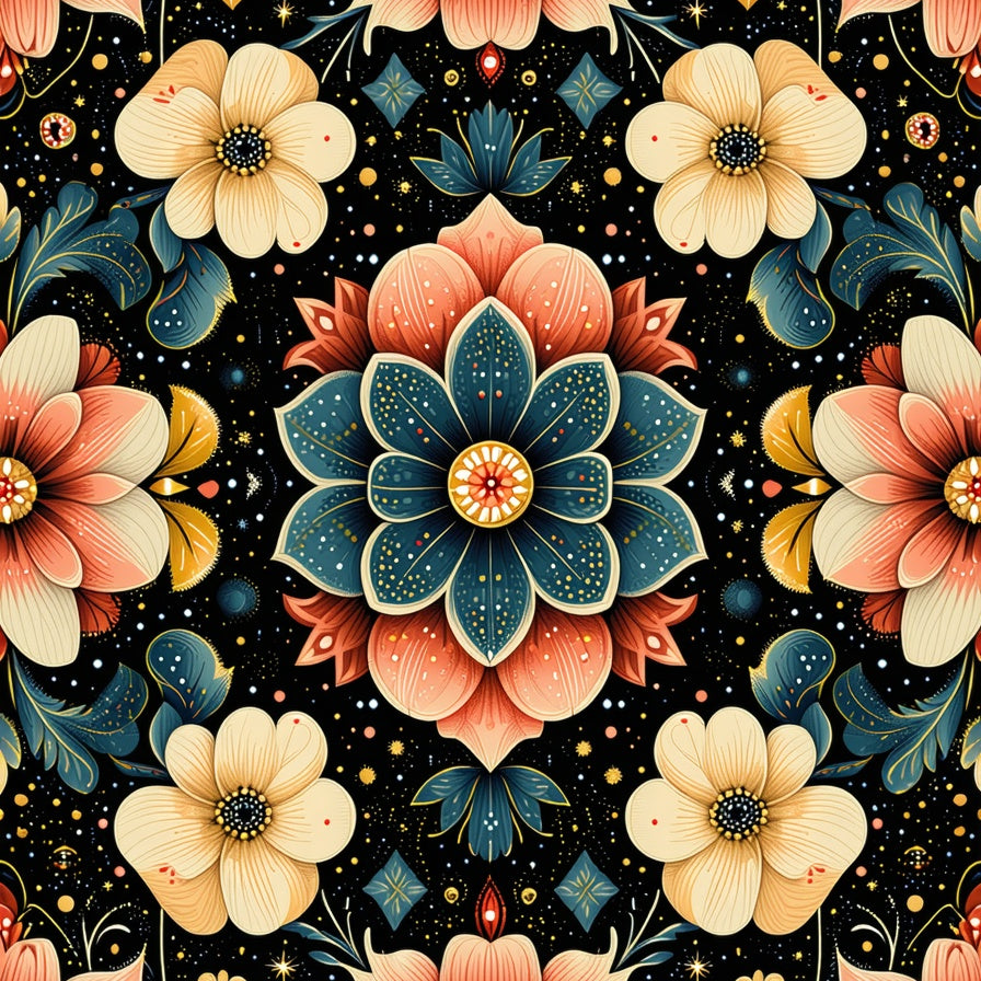 Boho Mosaic Medallion Featuring Intricate Interlocking Floral Arrangements(Pink)