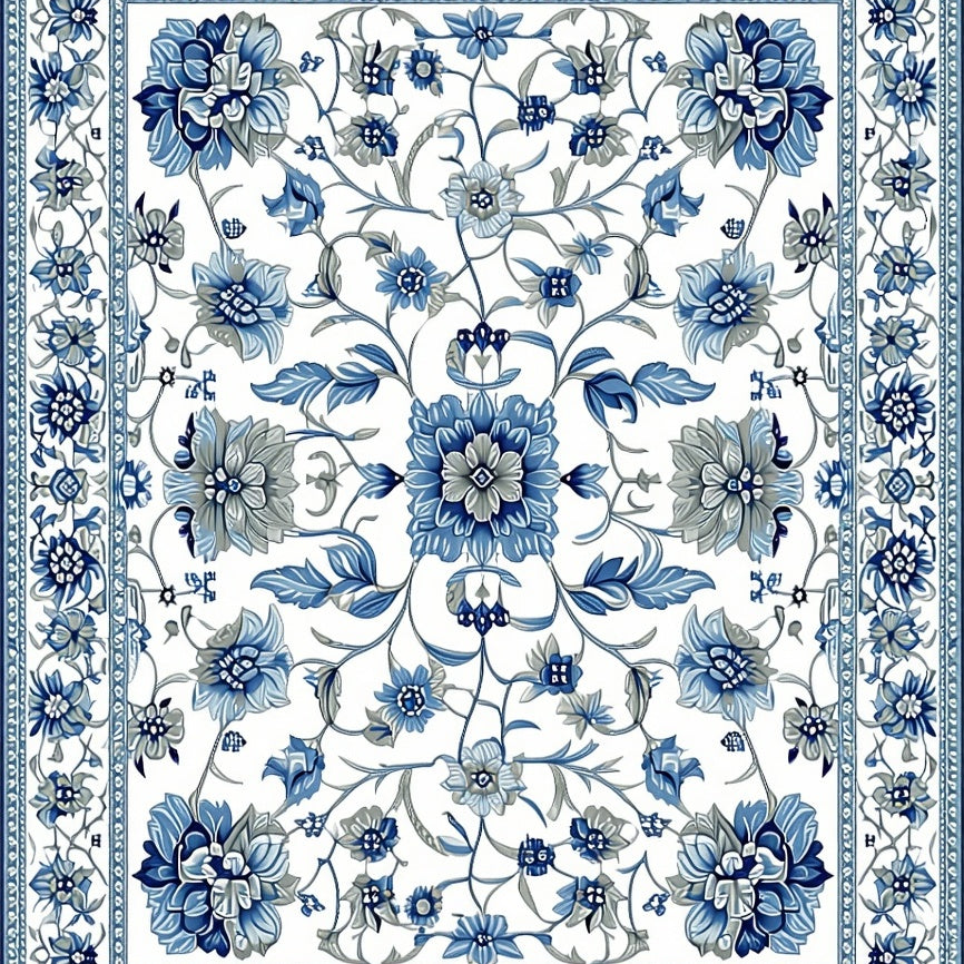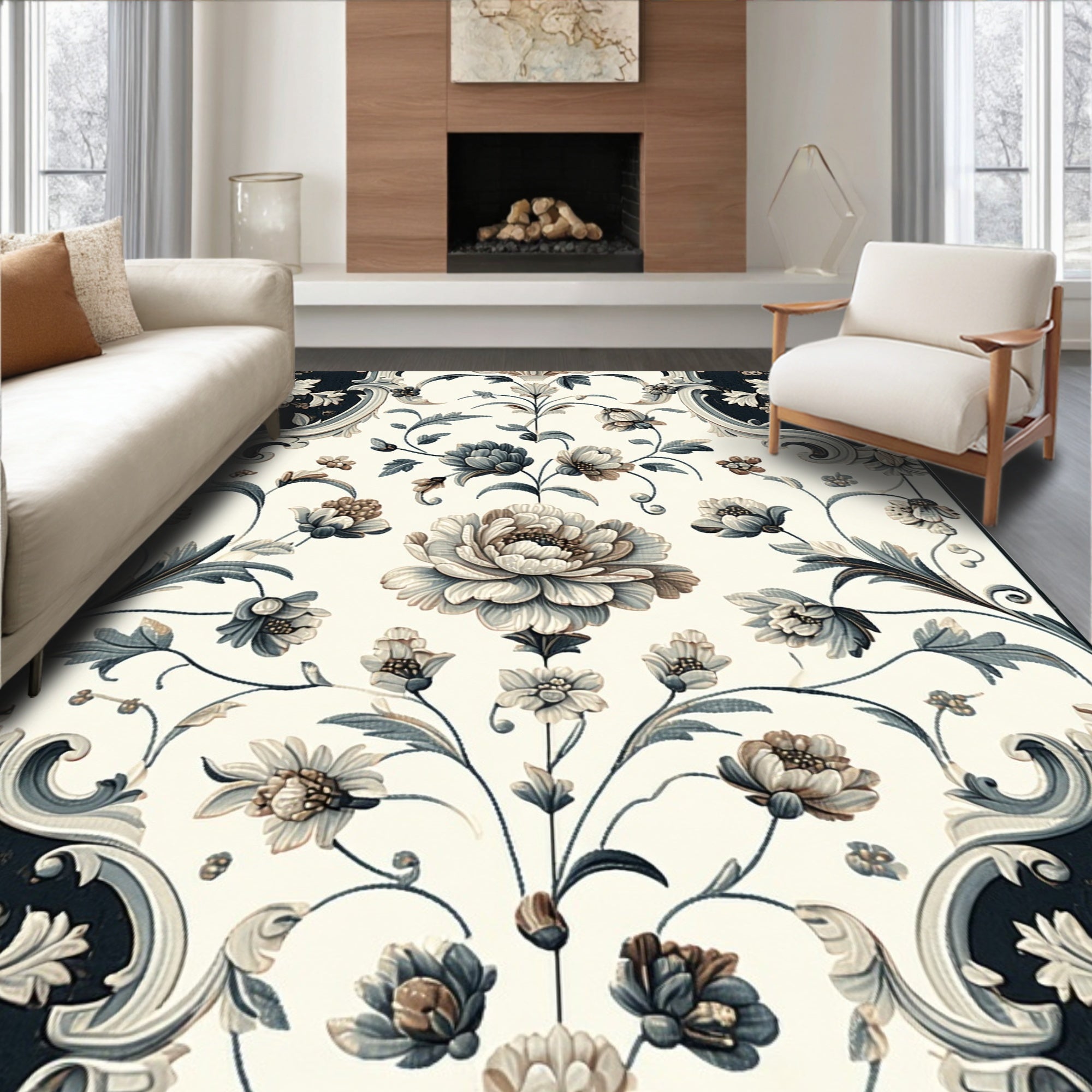 Elegant Floral Carpet Non Slip Floor Rug Modern Home Decor(Blue)