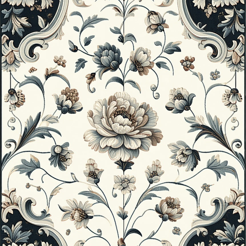 Vintage Bloom Noir Floral Area Rug Washable Accent Carpet(Ivory)