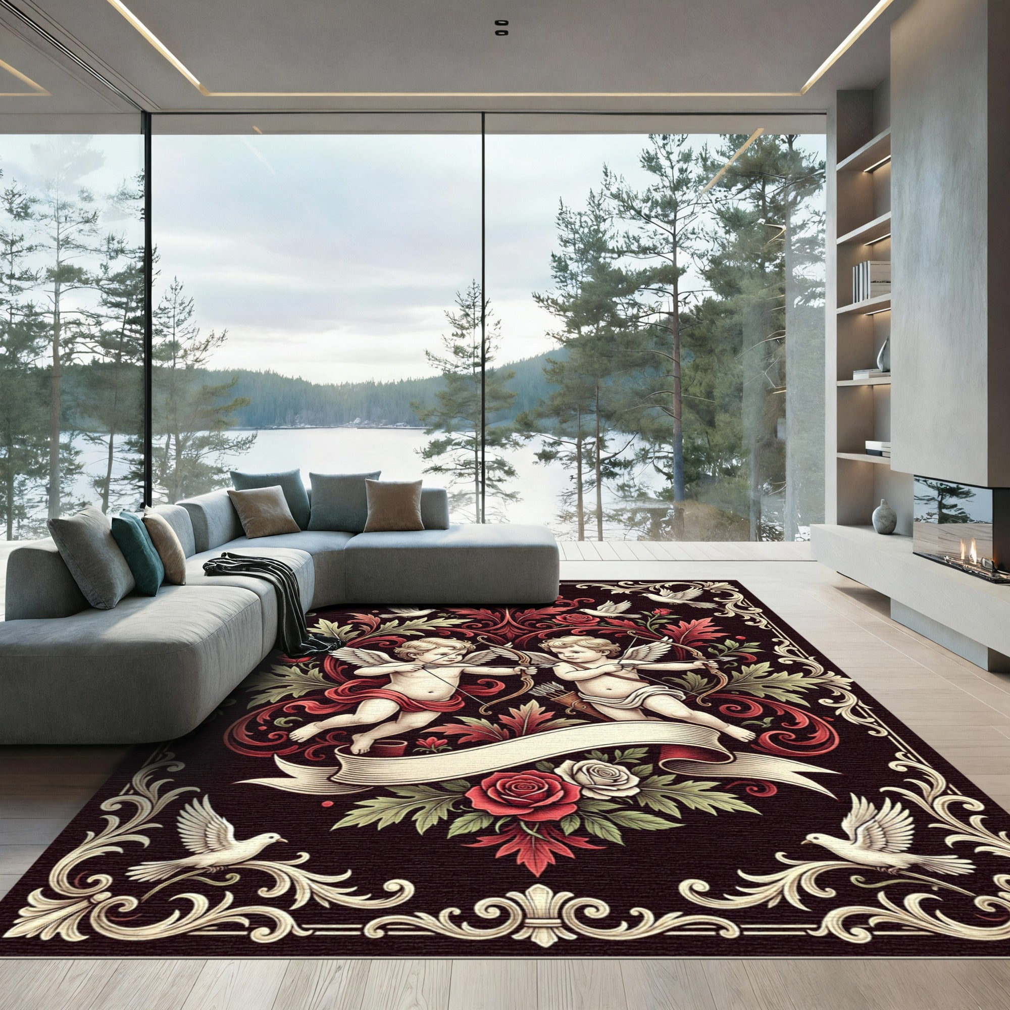 Cupid Love Birds Floral Vintage Accent Rug