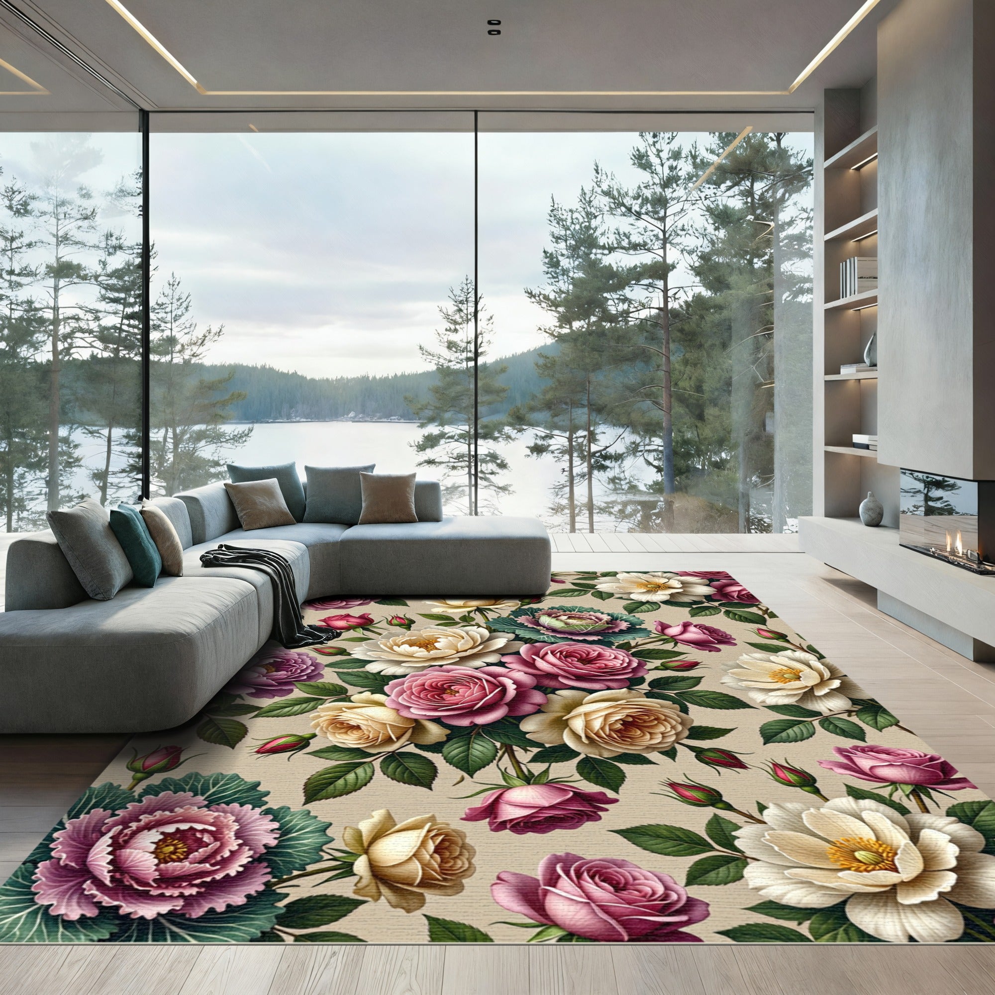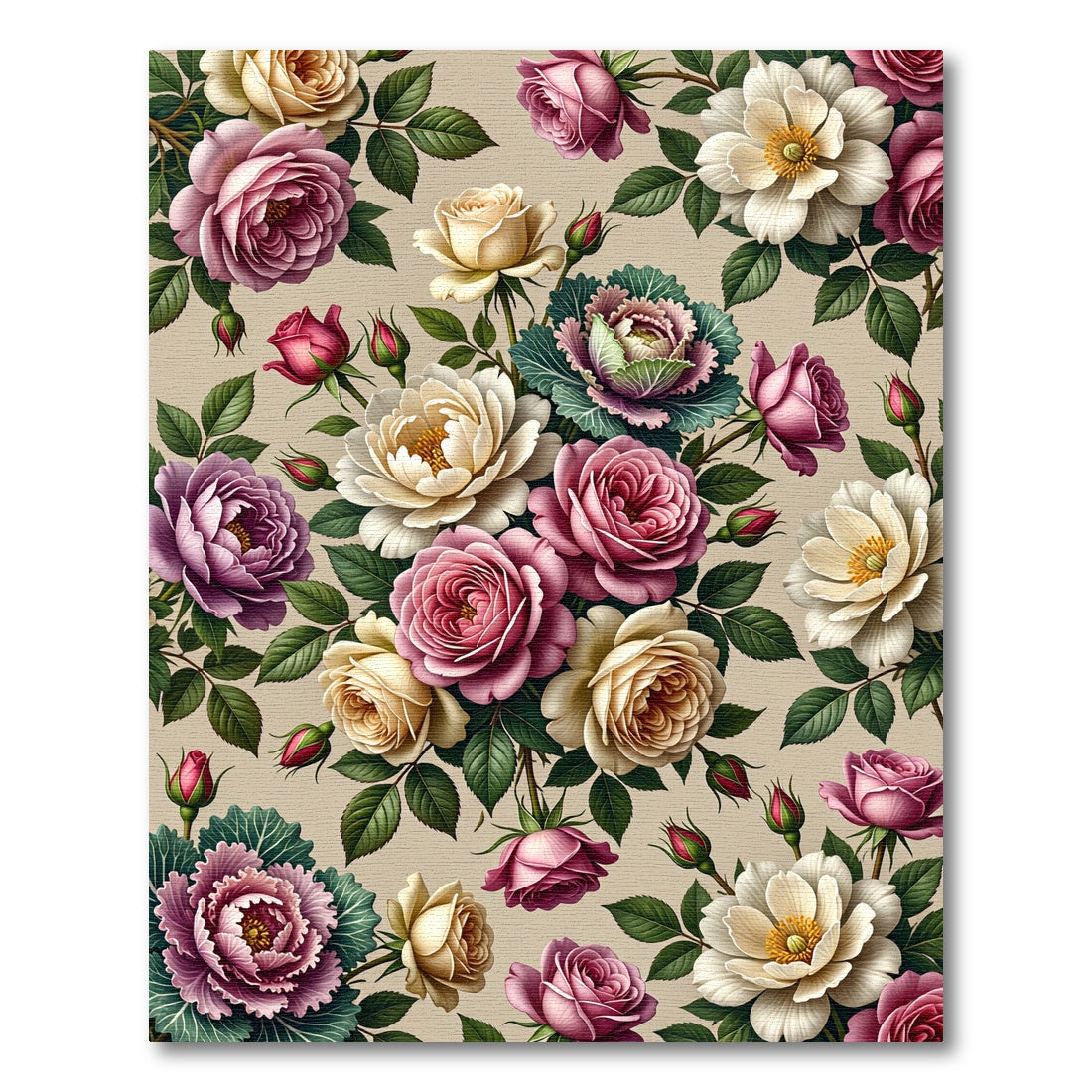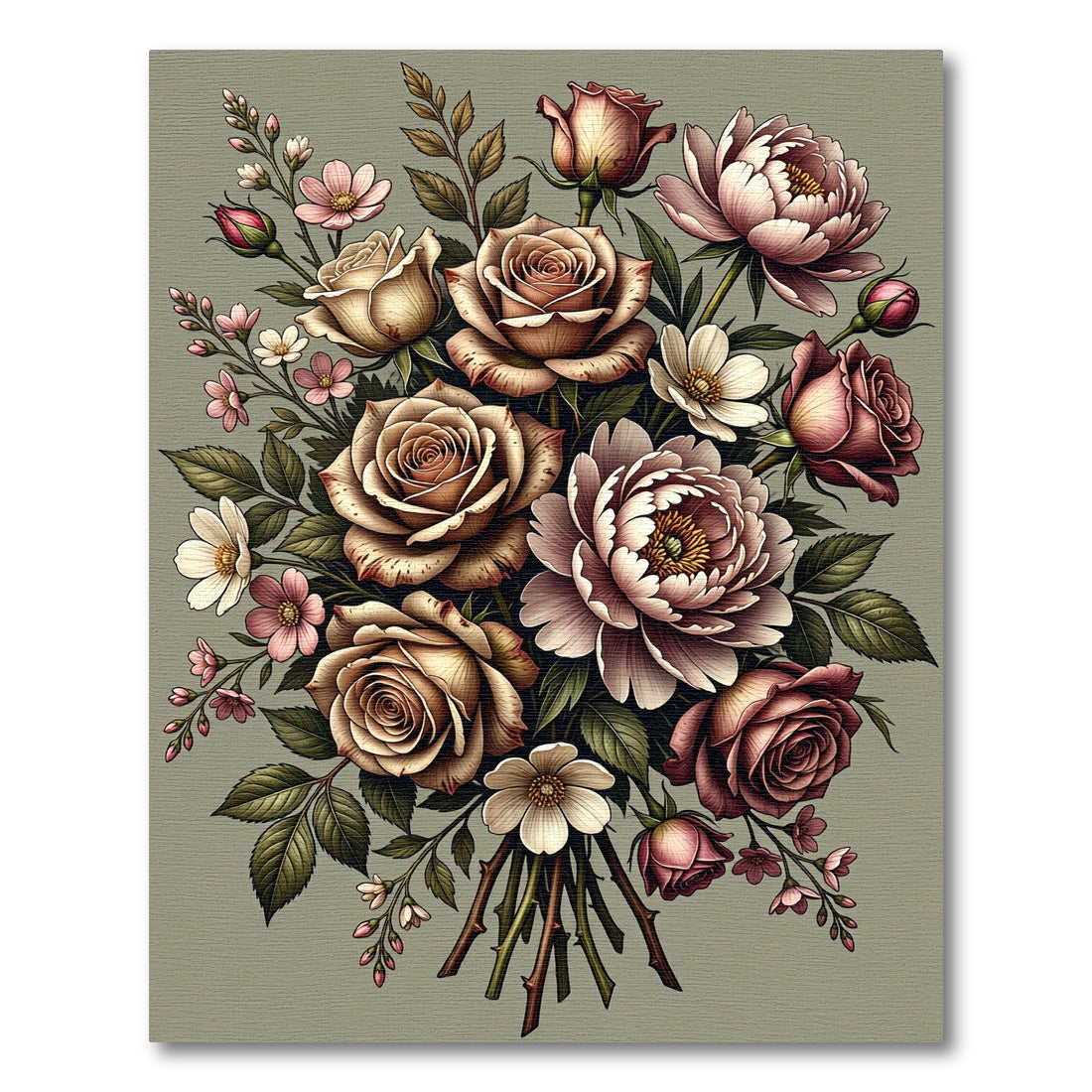 Vintage Rose and Peony Floral Bouquet Rug