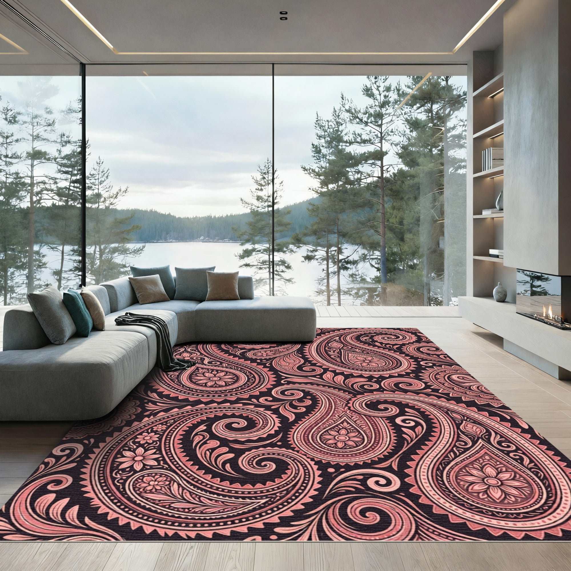 Coral Paisley Floral Swirls Rug