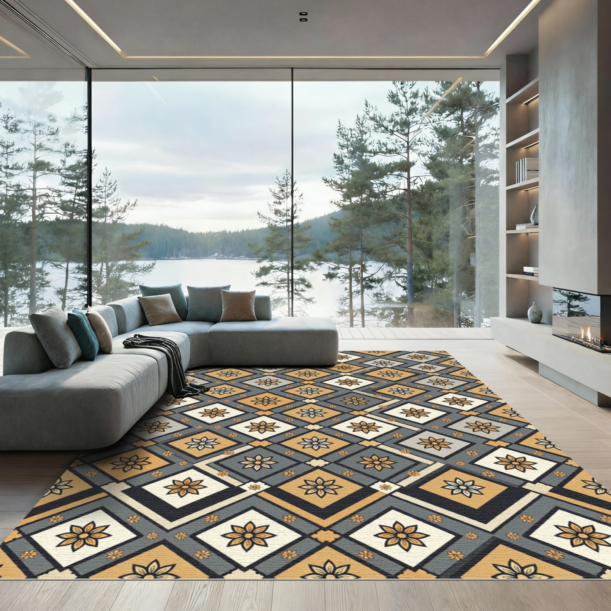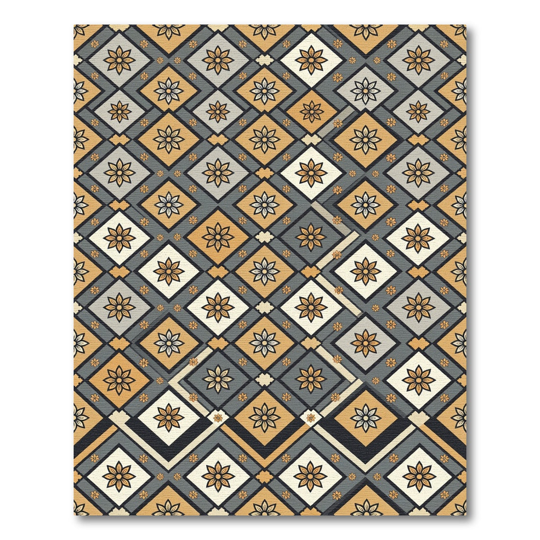 Golden Gray Floral Diamond Arrangement Rug