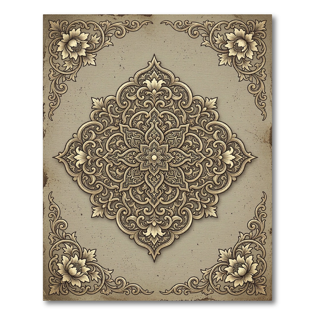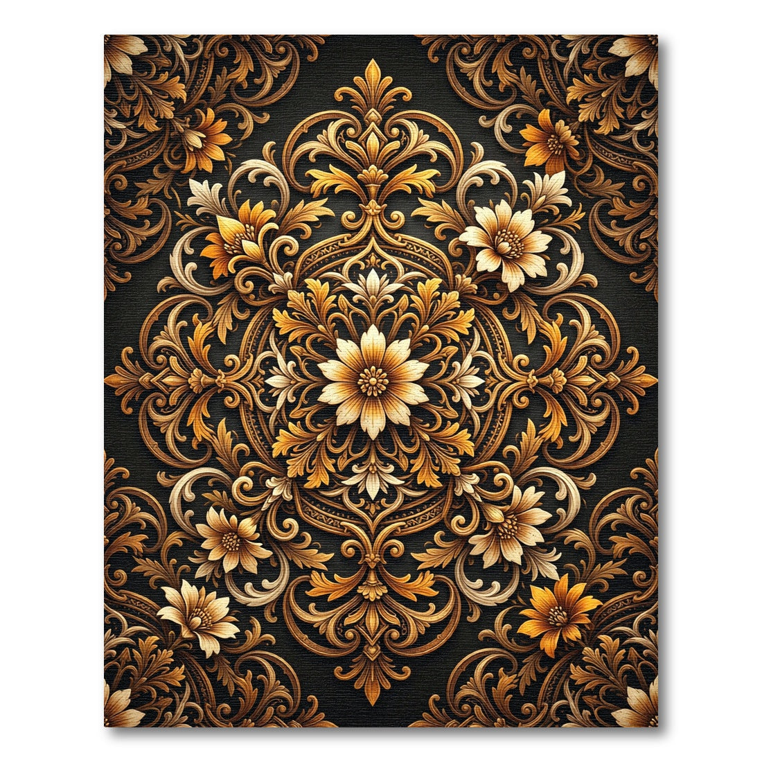 Golden Damask Floral Medallion Rug