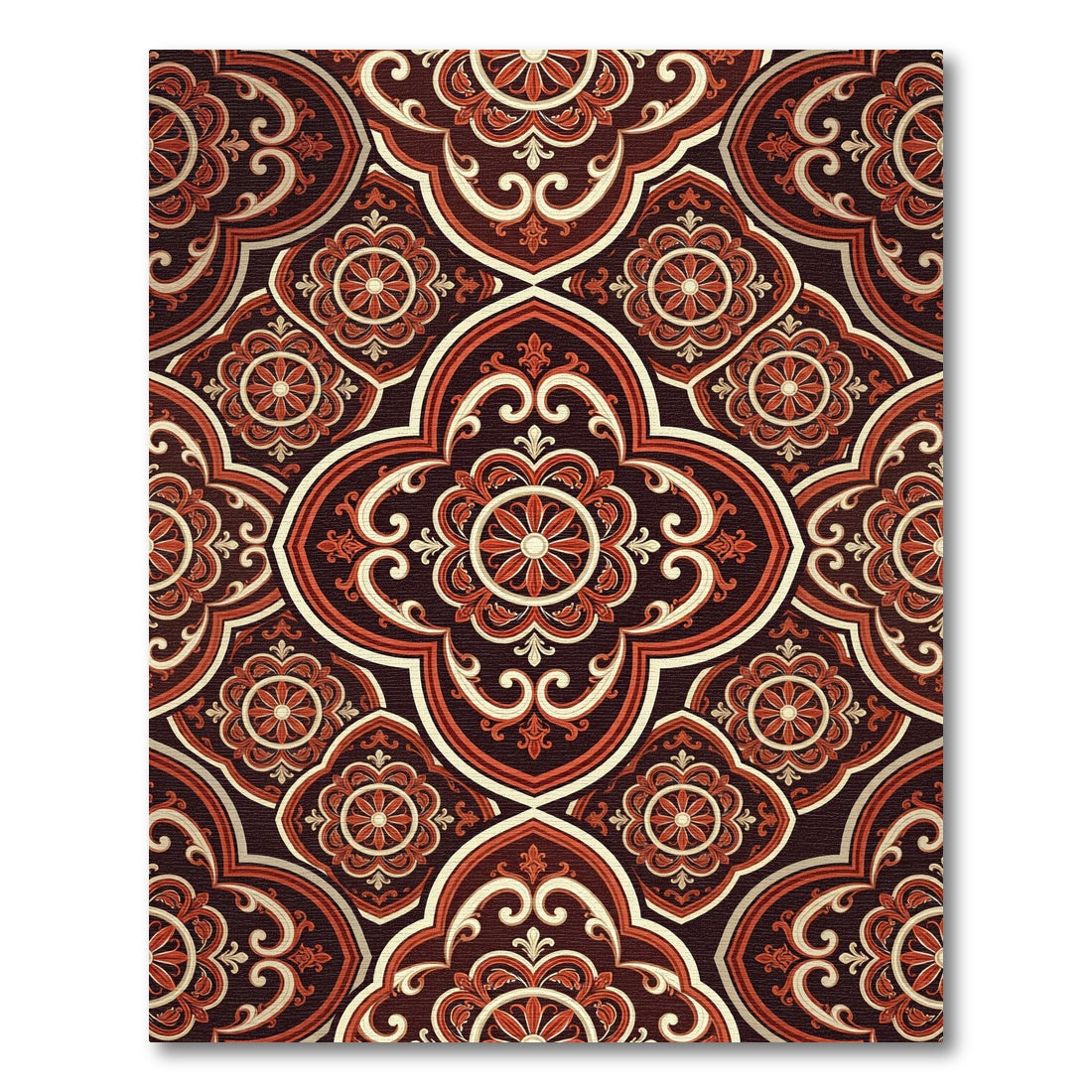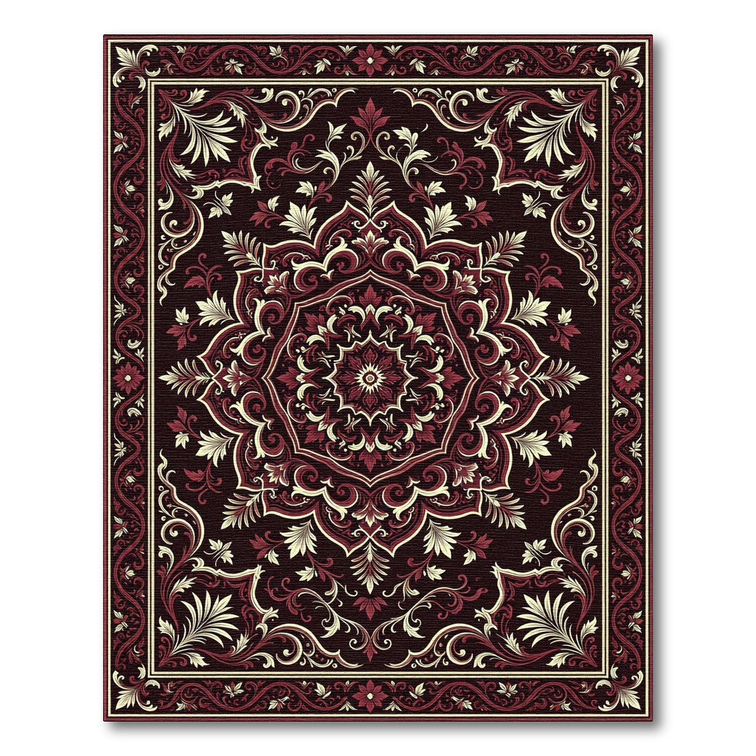 Rich Crimson Floral Scrolling Mandala Rug