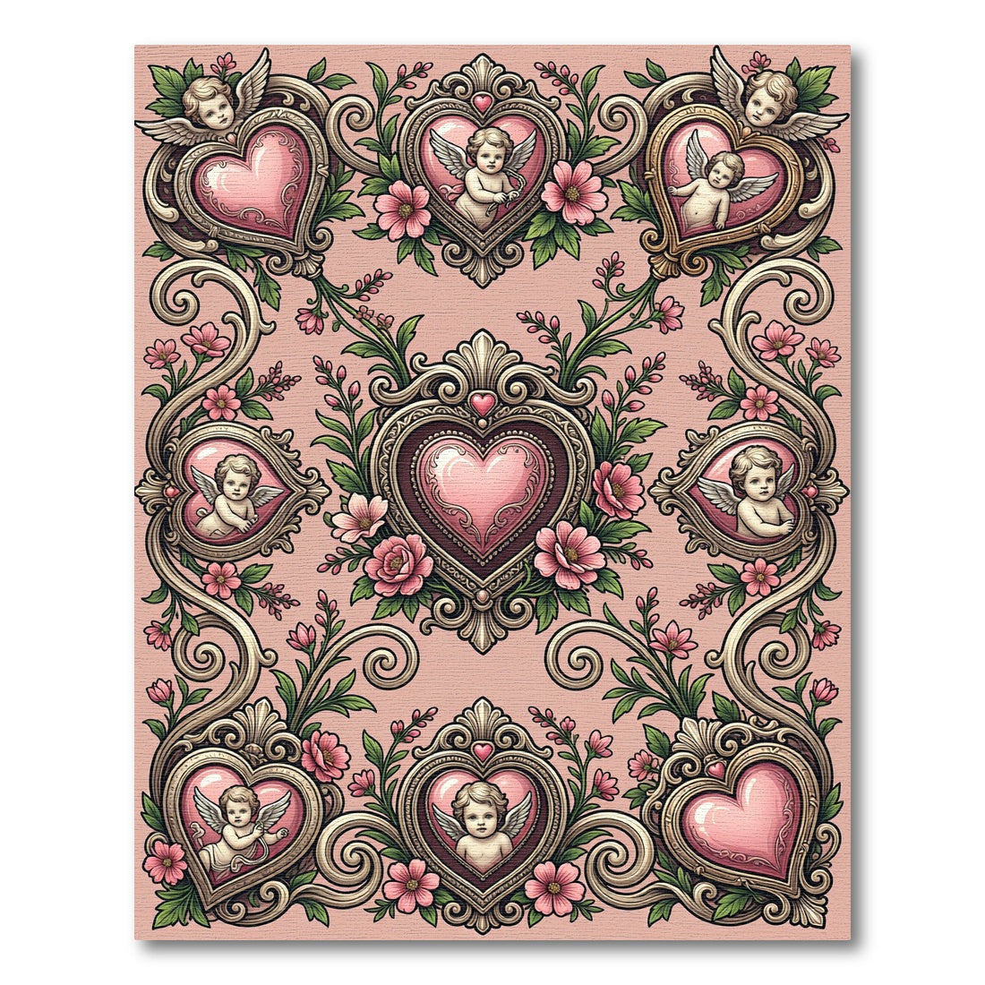 Pink Cherub Heart Floral Arrangement Rug