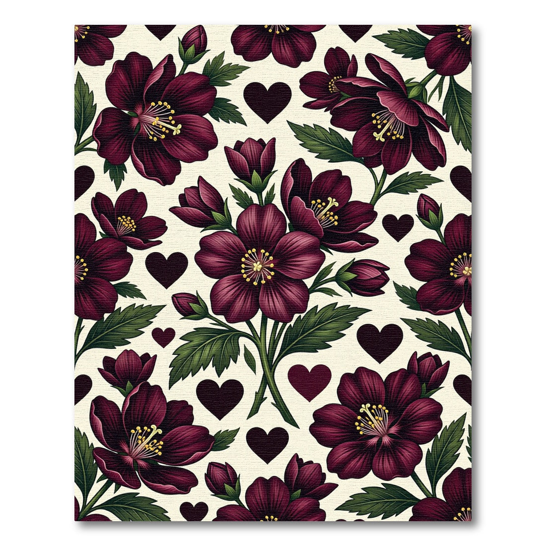 Deep Burgundy Floral Hearts Composition Rug
