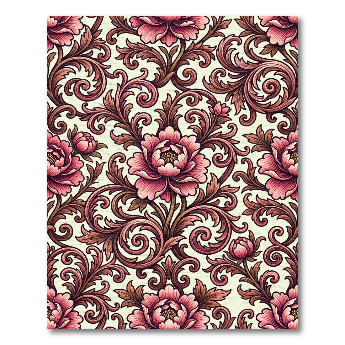 Ornate Pink Floral Scrollwork Rug