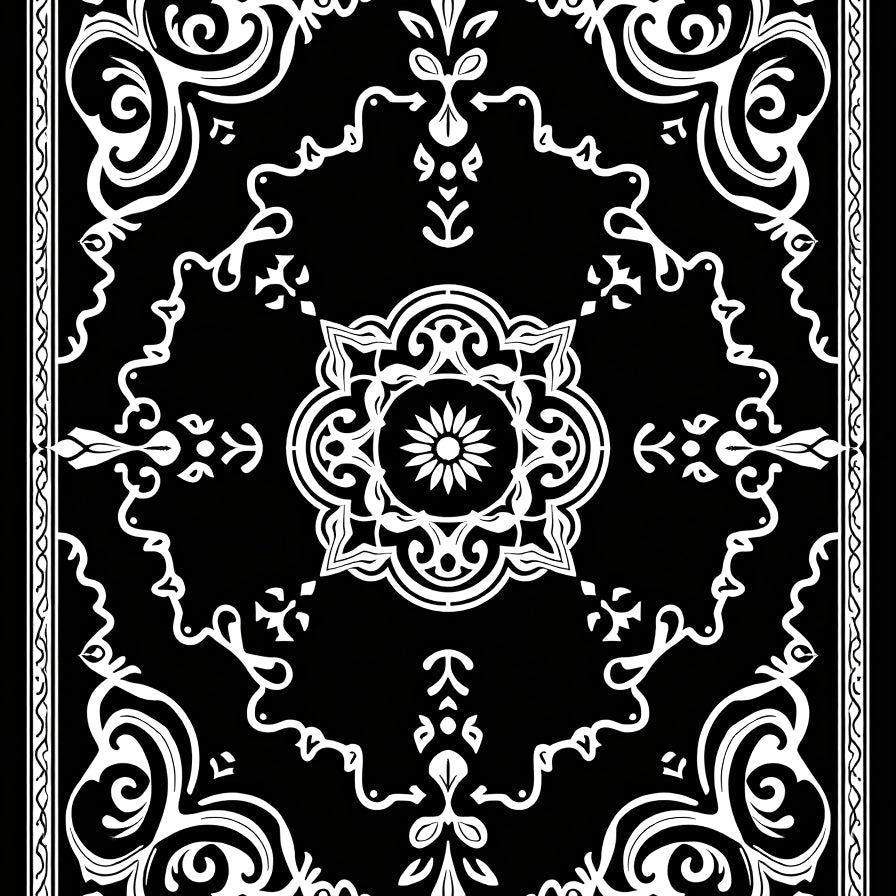 Vintage Tapestry Design with Intricate Floral Medallion Motifs (Black)