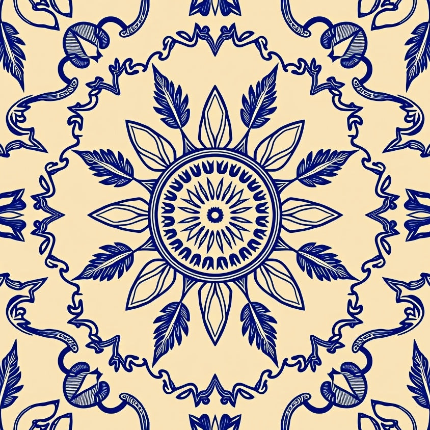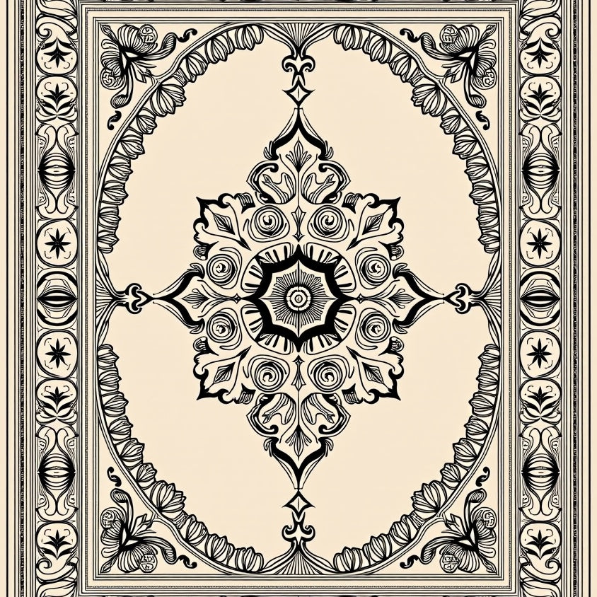 Vintage Medallion Design with Delicate Filigree and Floral Accents(Beige)