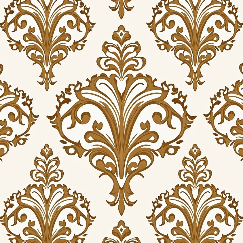 Elegant Damask Motif Featuring Ornate Floral Swirls and Curves(Brown)
