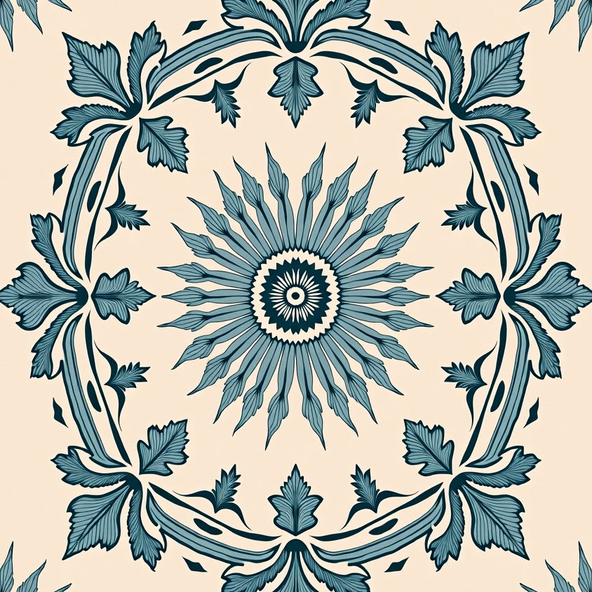 Medallion with Distressed Scrollwork and Delicate Floral Accents(Blue)